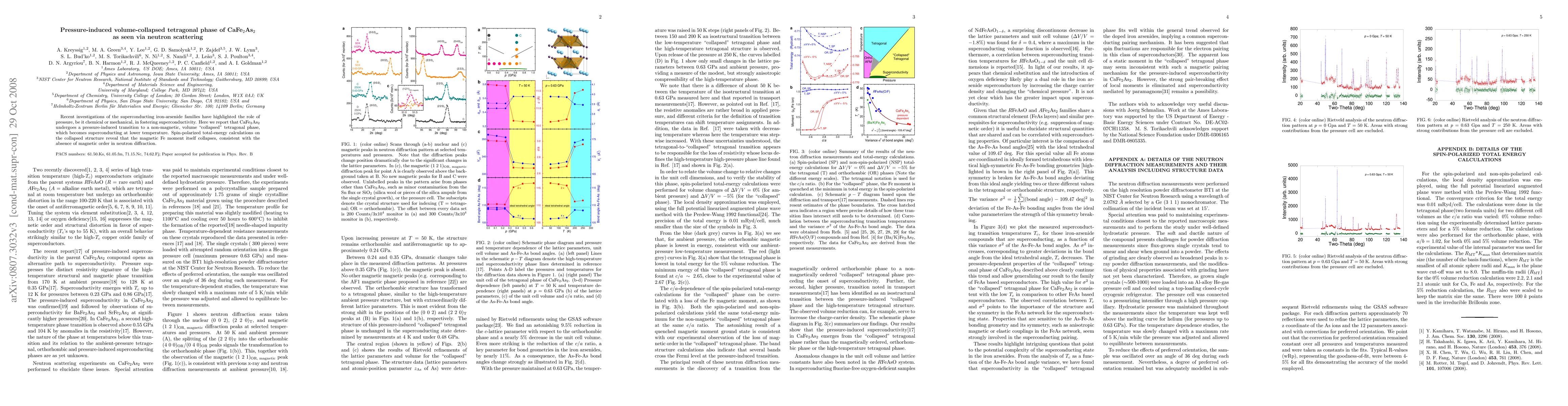 This research reveals that applying pressure induces a transition in CaFe2As2 to a non-magnetic, volume-collapsed tetragonal phase that exhibits superconductivity at lower temperatures. Neutron scattering confirms the absence of magnetic order, correlating with spin-polarized calculations showing collapsed magnetic Fe moments.