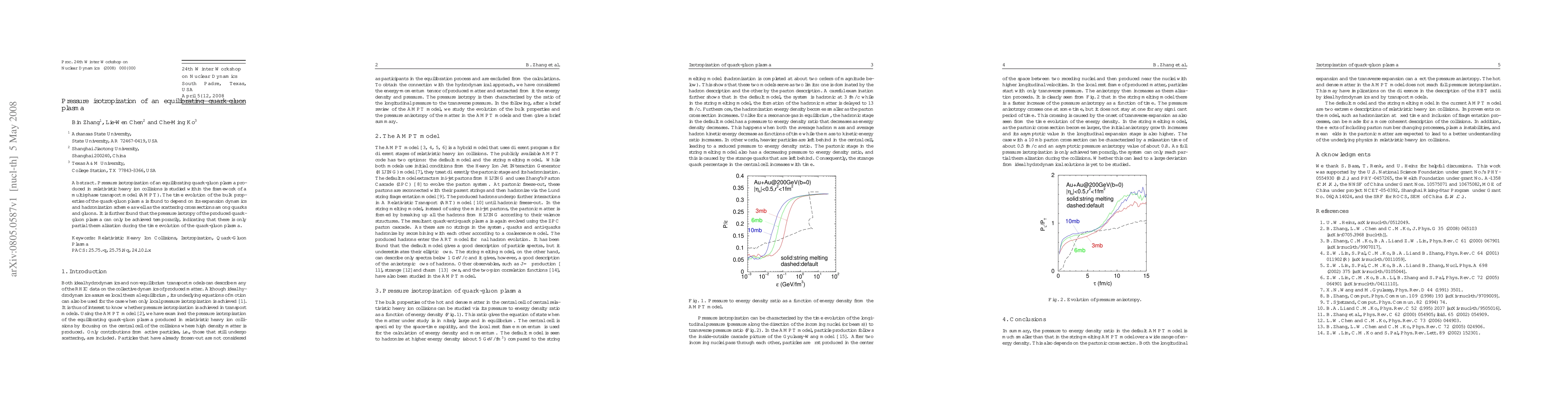 The study using the AMPT model reveals that the pressure in an equilibrating quark-gluon plasma becomes temporarily isotropic, but only partially thermalizes due to its expansion dynamics and hadronization scheme, along with scattering cross sections among quarks and gluons.