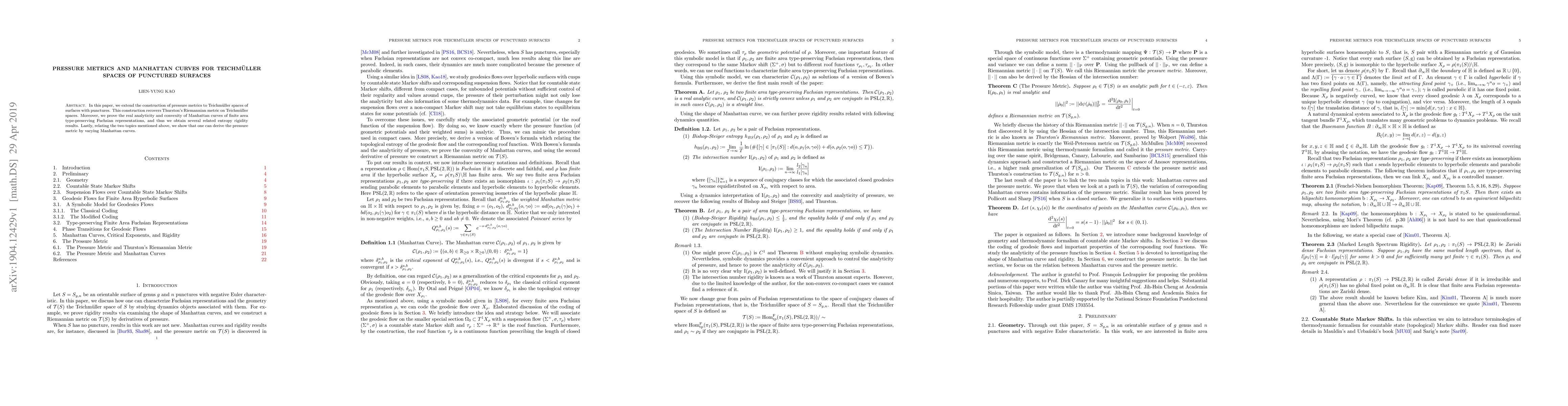 This paper extends pressure metrics to Teichmüller spaces of punctured surfaces, recovering Thurston's Riemannian metric. It proves the real analyticity and convexity of Manhattan curves for finite area Fuchsian representations, leading to entropy rigidity results, and demonstrates that pressure metrics can be derived by varying Manhattan curves.