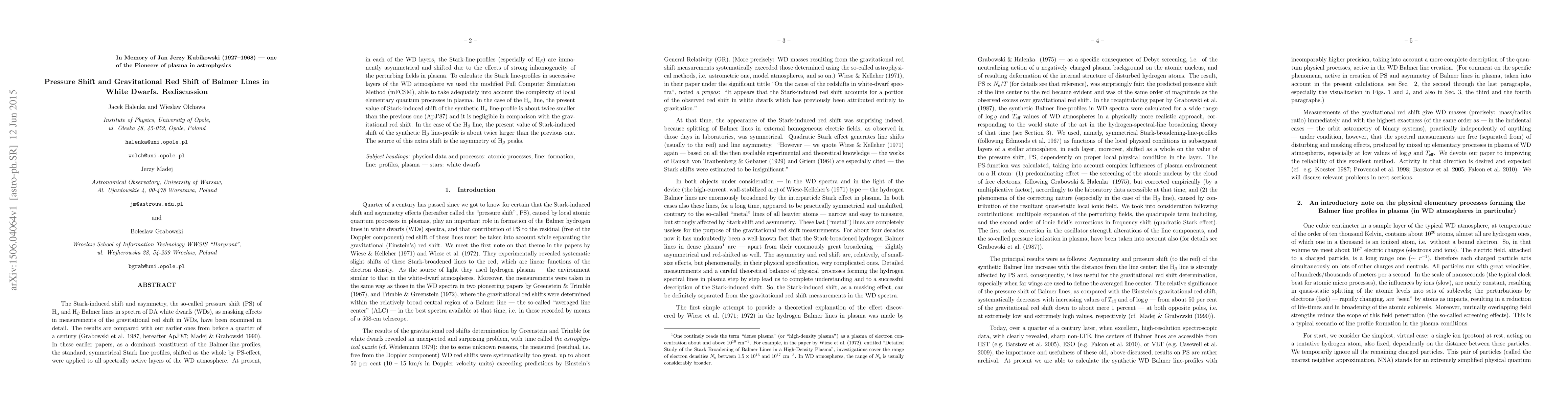 The Stark-induced shift and asymmetry, the so-called pressure shift (PS) of $H_\alpha$ and $H_\beta$ Balmer lines in spectra of DA white dwarfs (WDs), as masking effects in measurements of the gravitational red shift in WDs, have been examined in detail. The results are compared with our earlier ones from before a quarter of a century (Grabowski et al. 1987, hereafter ApJ'87; Madej and Grabowski 1990). In these earlier papers, as a dominant constituent of the Balmer-line-profiles, the standard, symmetrical Stark line profiles, shifted as the whole by PS-effect, were applied to all spectrally active layers of the WD atmosphere. At present, in each of the WD layers, the Stark-line-profiles (especially of $H_\beta$) are immanently asymmetrical and shifted due to the effects of strong inhomogeneity of the perturbing fields in plasma. To calculate the Stark line-profiles in successive layers of the WD atmosphere we used the modified Full Computer Simulation Method (mFCSM), able to take adequately into account the complexity of local elementary quantum processes in plasma. In the case of the $H_\alpha$ line, the present value of Stark-induced shift of the synthetic $H_\alpha$ line-profile is about twice smaller than the previous one (ApJ'87) and it is negligible in comparison with the gravitational red shift. In the case of the $H_\beta$ line, the present value of Stark-induced shift of the synthetic $H_\beta$ line-profile is about twice larger than the previous one. The source of this extra shift is the asymmetry of $H_\beta$ peaks.