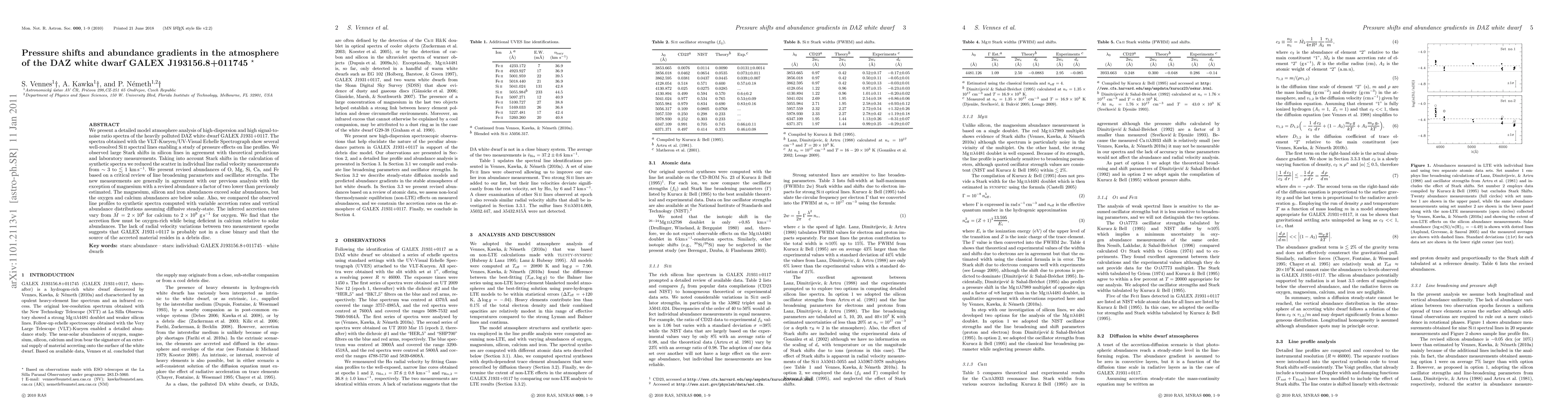 This paper analyzes the atmosphere of the DAZ white dwarf GALEX J1931+0117 using high-resolution spectra, revealing significant Stark shifts in silicon lines and revising elemental abundances. The study suggests a debris disc as the source of accreted material, with accretion rates varying from 2x10^6 to 2x10^9 g/s for different elements.