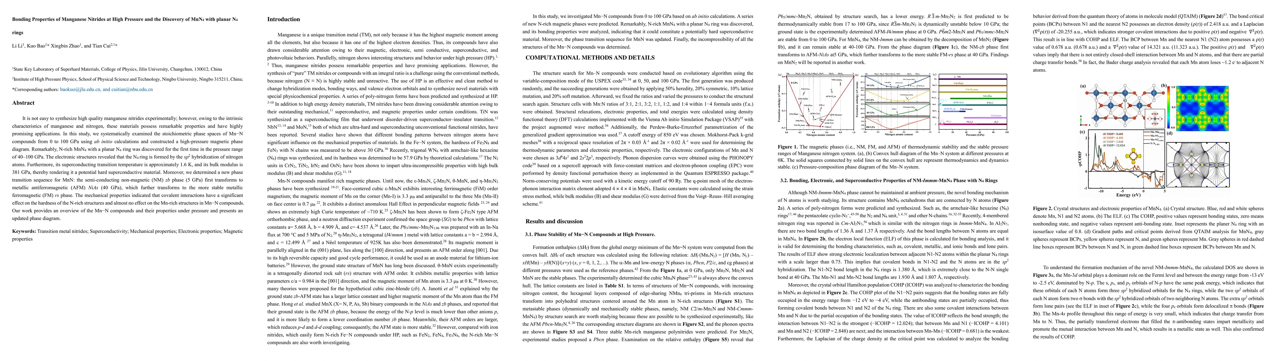Researchers discovered a new phase of manganese nitride with a planar N4 ring under high pressure, which could potentially make it a hard superconductive material. The study also investigated the phase transition sequences and mechanical properties of Mn-N compounds.