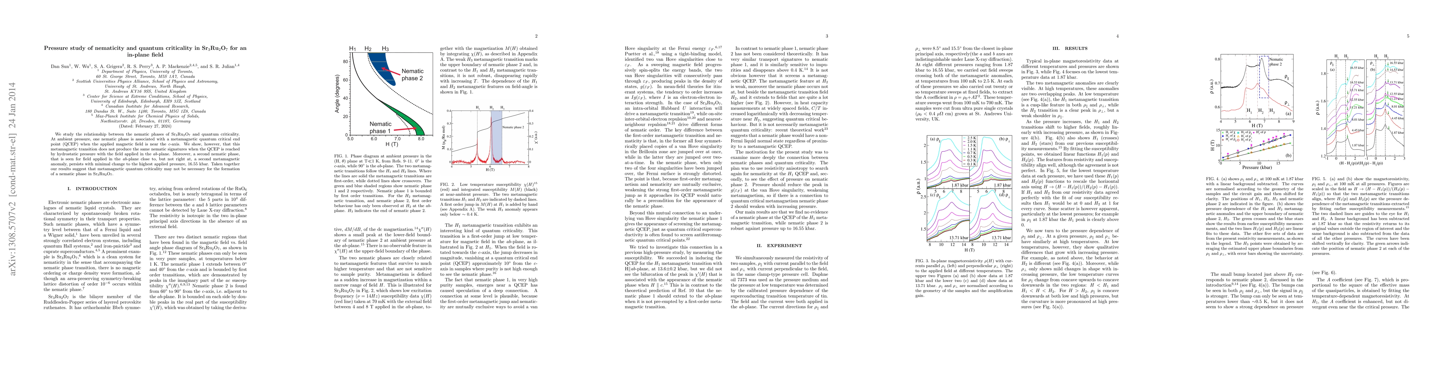 This study explores the nematic phases in Sr$_3$Ru$_2$O$_7$ under both ambient pressure and hydrostatic pressure, finding that a nematic phase persists with minimal change despite the absence of a metamagnetic quantum critical end point induced by pressure in the ab-plane. This suggests that metamagnetic quantum criticality is not essential for nematicity in this material.