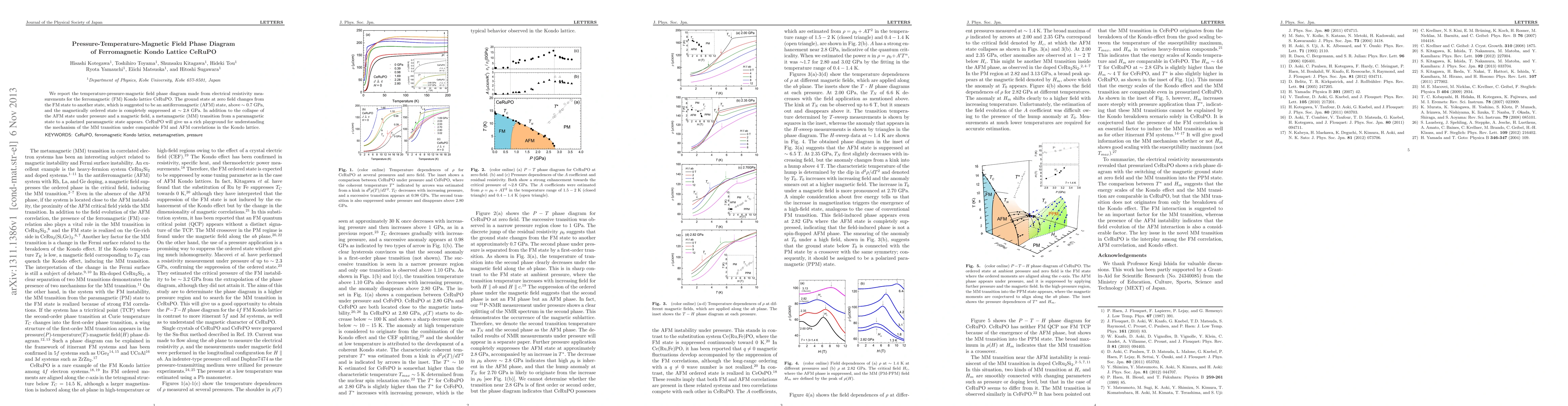 This study presents a detailed pressure-temperature-magnetic field phase diagram for CeRuPO, revealing transitions from ferromagnetic to antiferromagnetic states under pressure and the suppression of magnetic order at high pressures and magnetic fields. The findings provide insights into the metamagnetic transition mechanisms in Kondo lattice systems.