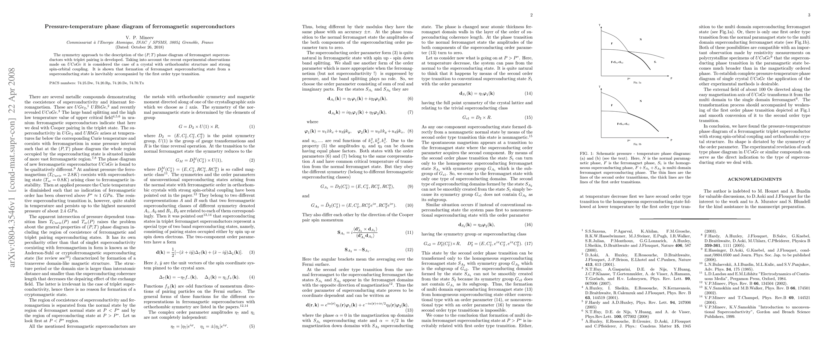The symmetry approach to the description of the (P,T) phase diagram of ferromagnet superconductors with triplet pairing is developed. Taking into account the recent experimental observations made on UCoGe it is considered the case of a crystal with orthorhombic structure and strong spin-orbital coupling. It is shown that formation of ferromagnet superconducting state from a superconducting state is inevitably accompanied by the first order type transition.