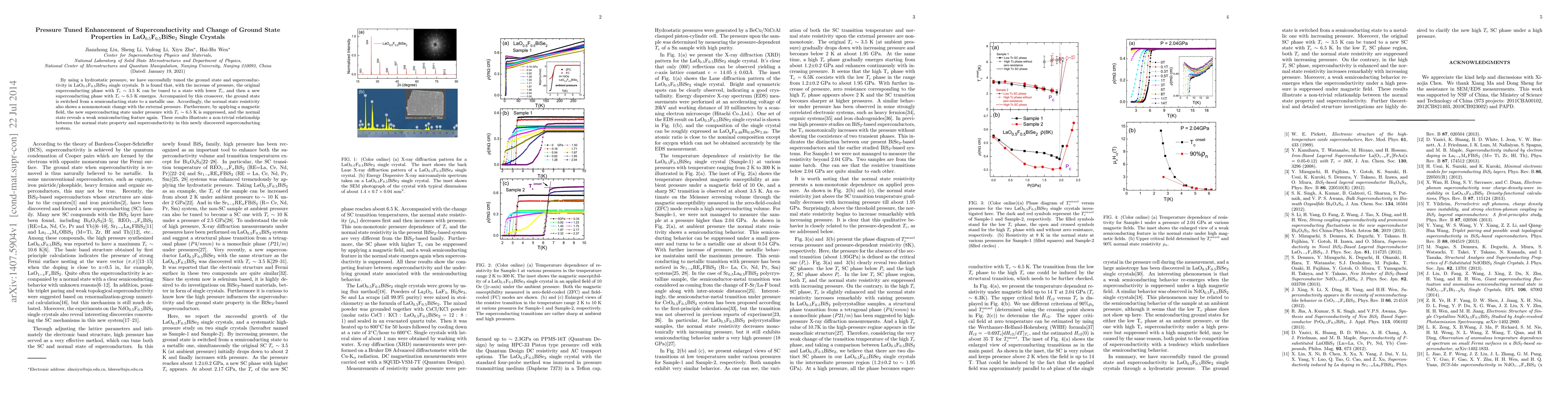 This study demonstrates that hydrostatic pressure can tune the superconductivity and ground state of LaO0.5F0.5BiSe2 single crystals, transitioning from a lower Tc superconducting phase to a new higher Tc phase of 6.5 K, accompanied by a shift from semiconducting to metallic ground state properties.