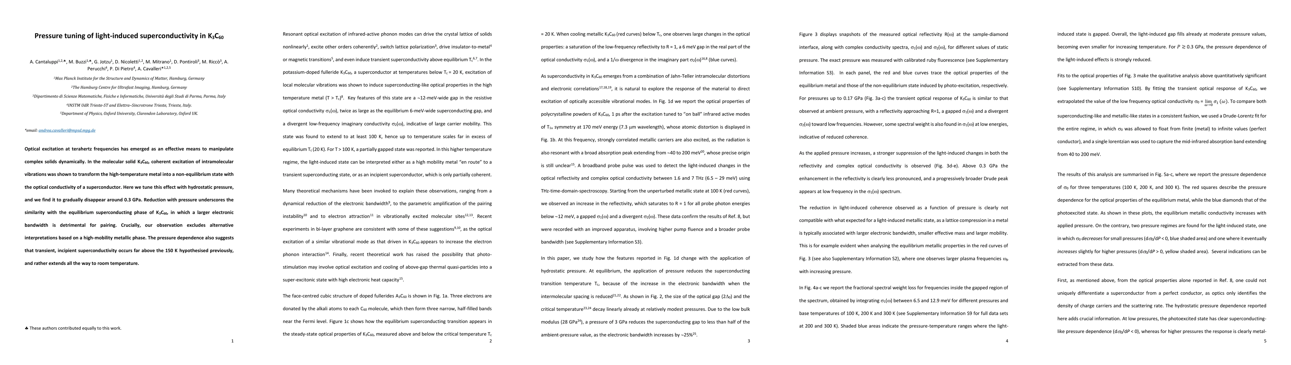 Researchers demonstrate pressure-tunable light-induced superconductivity in K3C60, showing it disappears at 0.3 GPa, resembling equilibrium superconducting behavior. The finding suggests transient superconductivity occurs at higher temperatures, potentially reaching room temperature.
