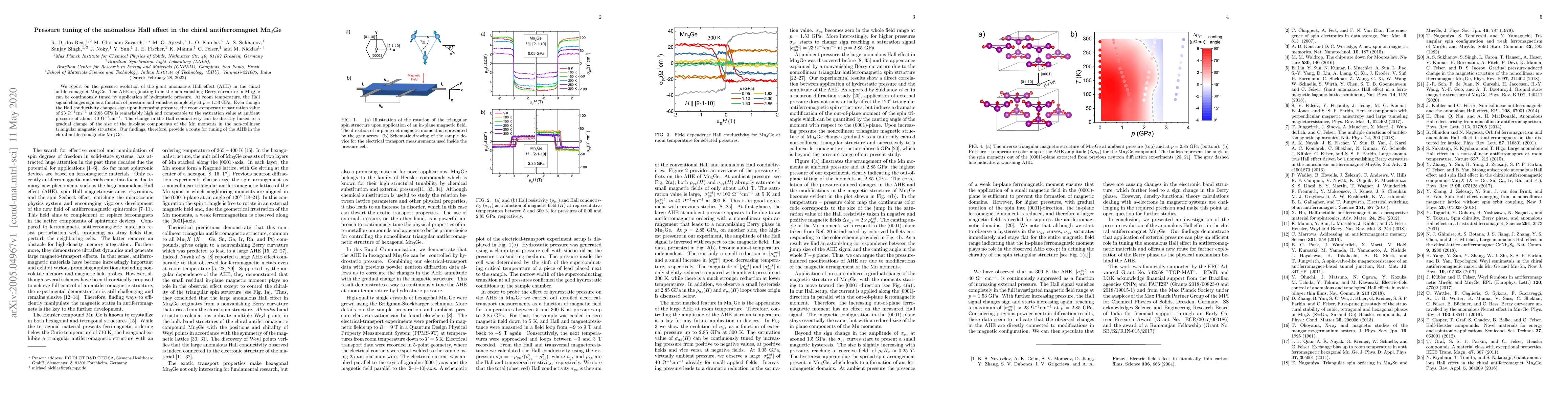 This study investigates how hydrostatic pressure affects the giant anomalous Hall effect in the chiral antiferromagnet Mn$_3$Ge, revealing that the effect can be continuously tuned by pressure. The Hall signal changes sign and vanishes at 1.53 GPa, yet retains a high saturation value comparable to ambient pressure conditions.