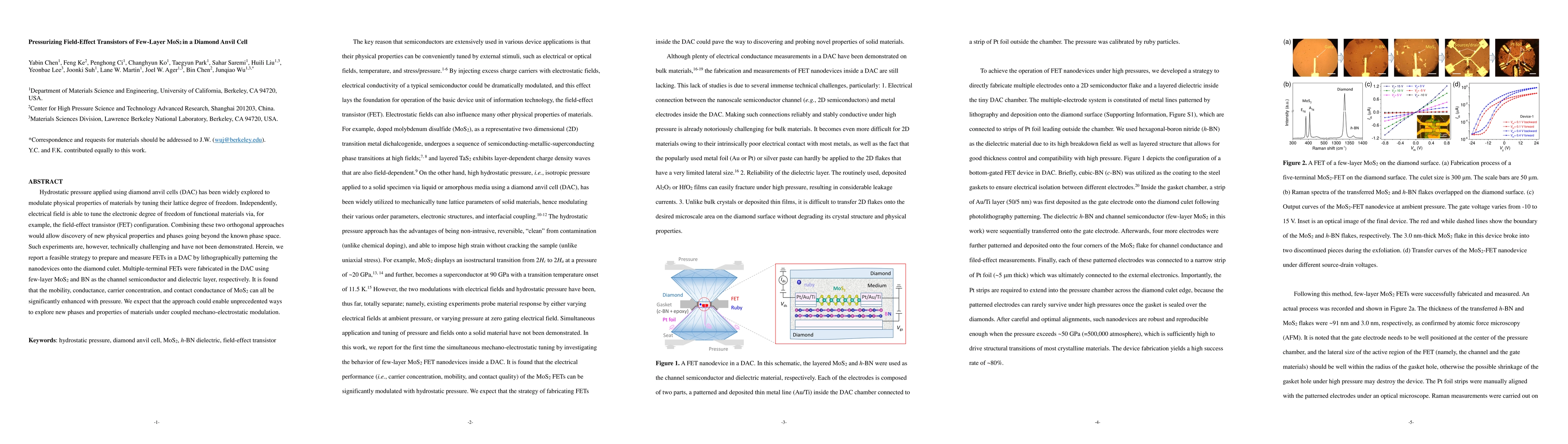 Researchers developed a way to modulate the properties of few-layer MoS2 using both hydrostatic pressure and electrical fields in a diamond anvil cell, leading to significant enhancements in mobility and conductivity.