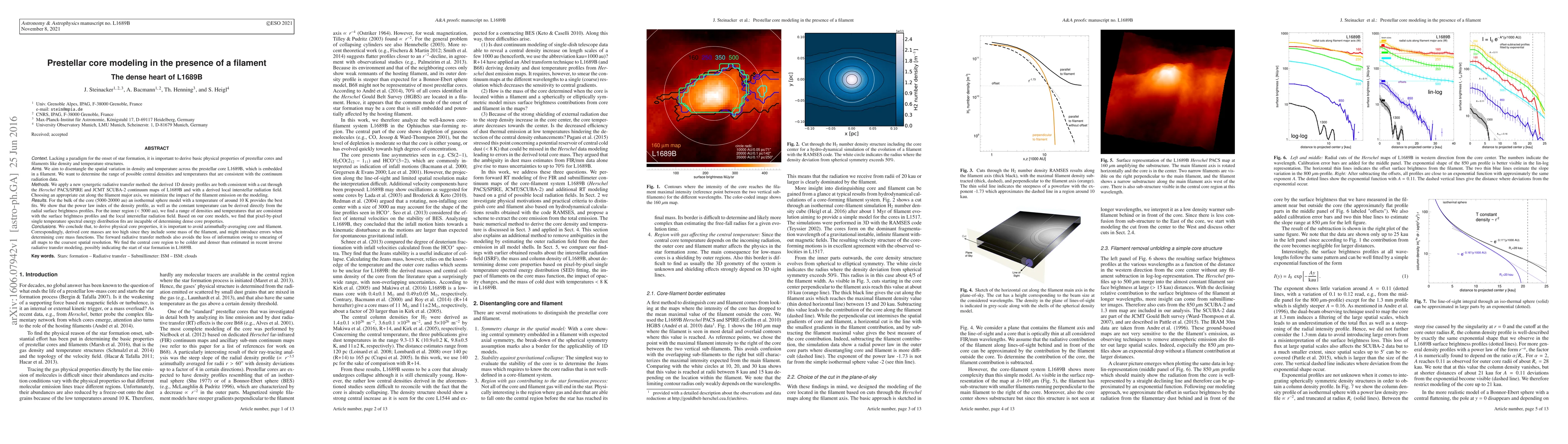 Short version: We apply a new synergetic radiative transfer method: the derived 1D density profiles are both consistent with a cut through the Herschel PACS/SPIRE and JCMT SCUBA-2 continuum maps of L1689B and with a derived local interstellar radiation field. Choosing an appropriate cut along the filament major axis, we minimize the impact of the filament emission on the modeling. For the bulk of the core (5000-20000 au) an isothermal sphere model with a temperature of around 10 K provides the best fits. We show that the power law index of the density profile, as well as the constant temperature can be derived directly from the radial surface brightness profiles. For the inner region (< 5000 au), we find a range of densities and temperatures that are consistent with the surface brightness profiles and the local interstellar radiation field. Based on our core models, we find that pixel-by-pixel single temperature spectral energy distribution fits are incapable of determining dense core properties. We conclude that, to derive physical core properties, it is important to avoid an azimuthal average of core and filament. Correspondingly, derived core masses are too high since they include some mass of the filament, and might introduce errors when determining core mass functions. The forward radiative transfer methods also avoids the loss of information owing to smearing of all maps to the coarsest spatial resolution. We find the central core region to be colder and denser than estimated in recent inverse radiative transfer modeling, possibly indicating the start of star formation in L1689B.