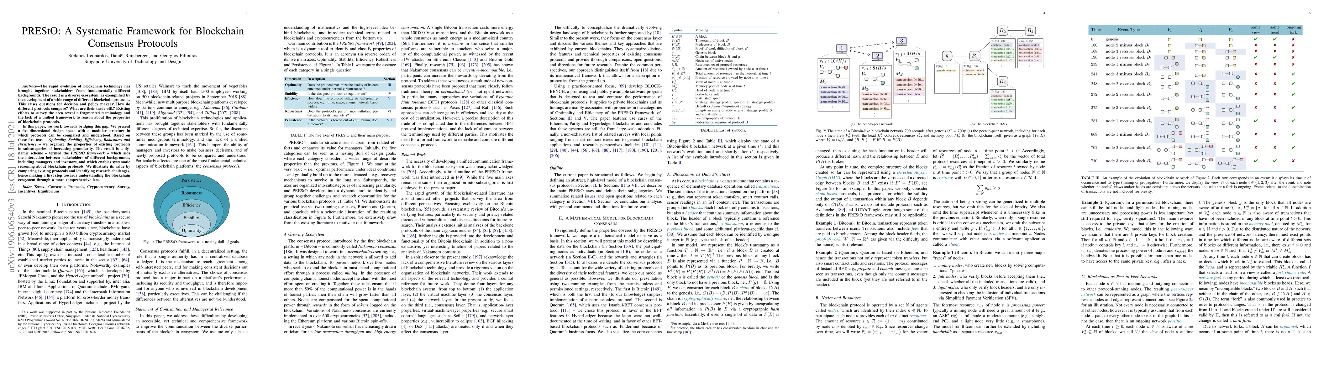 The PREStO framework provides a systematic five-dimensional design space to compare and understand blockchain consensus protocols based on Optimality, Stability, Efficiency, Robustness, and Persistence. It aims to bridge terminology gaps and facilitate systematic reasoning among stakeholders across diverse backgrounds.