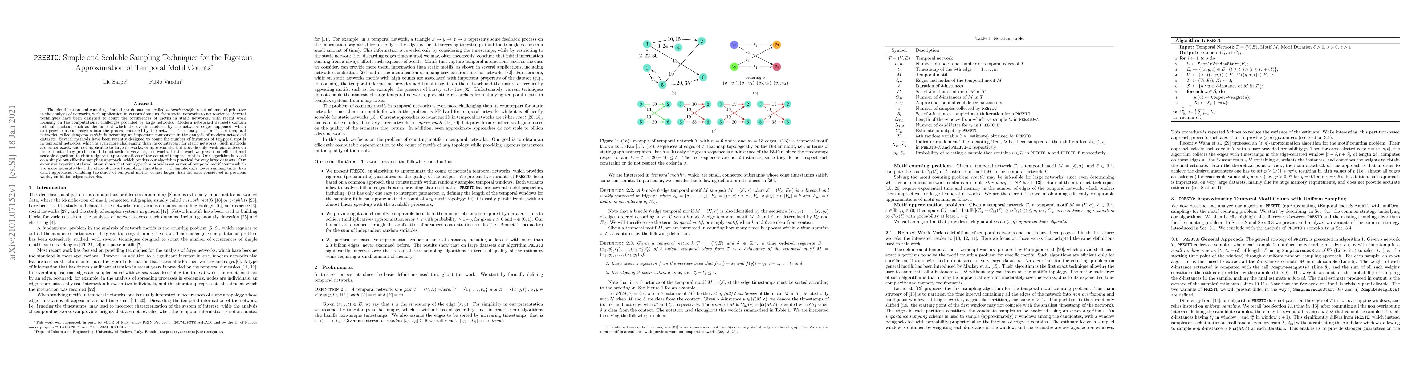 This paper introduces PRESTO, a simple and scalable algorithm for efficiently approximating the counts of temporal motifs in large networks. PRESTO uses an effective sampling method, providing more accurate estimates than existing sampling algorithms, while being significantly faster than exact approaches, enabling analysis of motifs in networks with billions of edges.
