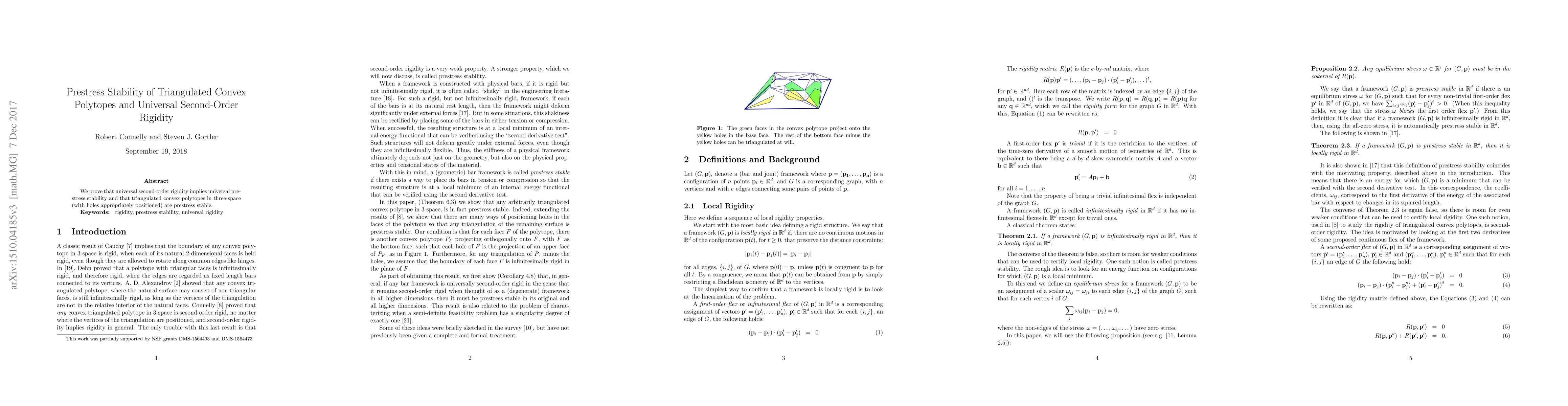 The research establishes a new connection between universal second-order rigidity and universal prestress stability.