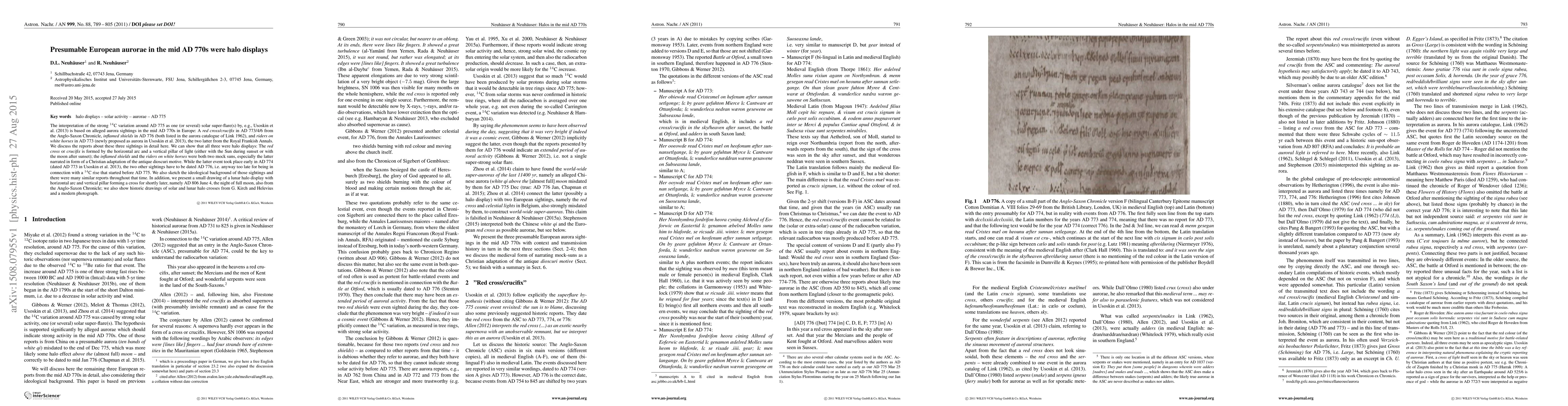 The interpretation of the strong 14-C variation around AD 775 as one (or several) solar super-flare(s) by, e.g., Usoskin et al. (2013) is based on alleged aurora sightings in the mid AD 770s in Europe: A "red cross/crucifix" in AD 773/4/6 from the Anglo-Saxon Chronicle, "inflamed shields" in AD 776 (both listed in the aurora catalogue of Link 1962), and "riders on white horses" in AD 773 (newly proposed as aurora in Usoskin et al. 2013), the two latter from the Royal Frankish Annals. We discuss the reports about these three sightings in detail here. We can show that all three were halo displays: The "red cross" or "crucifix" is formed by the horizontal arc and a vertical pillar of light (either with the Sun during sunset or with the moon after sunset); the "inflamed shields" and the "riders on white horses" were both two mock suns, especially the latter narrated in form of a Christian adaptation of the antique dioscuri motive. While the latter event took place early in AD 774 (dated AD 773 in Usoskin et al. 2013), the two other sightings have to be dated AD 776, i.e. anyway too late for being in connection with a 14-C rise that started before AD 775. We also sketch the ideological background of those sightings and there were many similar reports throughout that time. In addition, we present a small drawing of a lunar halo display with horizontal arc and vertical pillar forming a cross for shortly later, namely AD 806 June 4, the night of full moon, also from the Anglo-Saxon Chronicle; we also show historic drawings of solar and lunar halo crosses from G. Kirch and Helevius and a modern photograph.