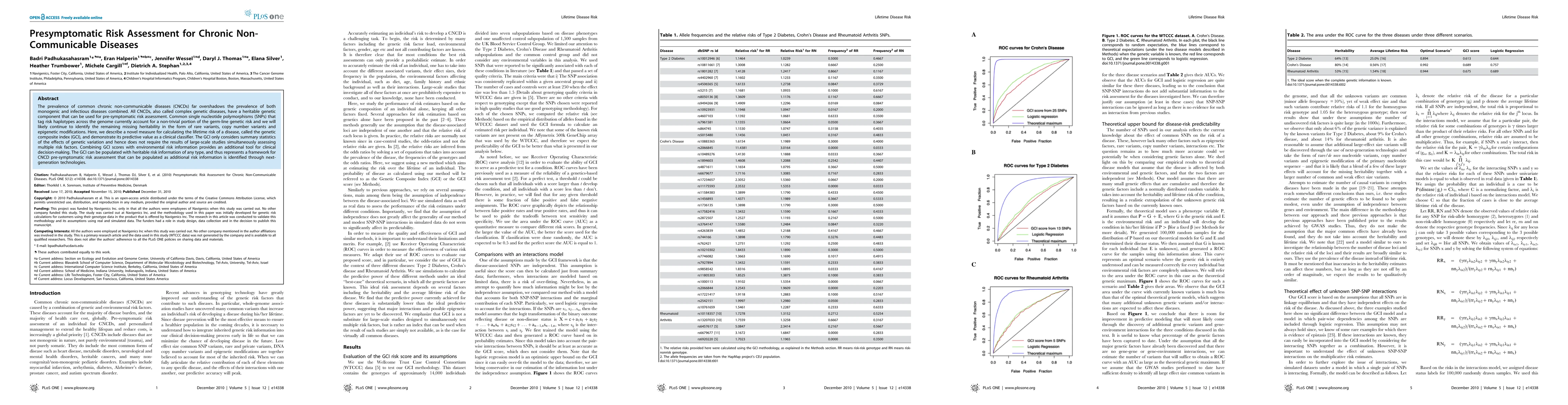 The prevalence of common chronic non-communicable diseases (CNCDs) far overshadows the prevalence of both monogenic and infectious diseases combined. All CNCDs, also called complex genetic diseases, have a heritable genetic component that can be used for pre-symptomatic risk assessment. Common single nucleotide polymorphisms (SNPs) that tag risk haplotypes across the genome currently account for a non-trivial portion of the germ-line genetic risk and we will likely continue to identify the remaining missing heritability in the form of rare variants, copy number variants and epigenetic modifications. Here, we describe a novel measure for calculating the lifetime risk of a disease, called the genetic composite index (GCI), and demonstrate its predictive value as a clinical classifier. The GCI only considers summary statistics of the effects of genetic variation and hence does not require the results of large-scale studies simultaneously assessing multiple risk factors. Combining GCI scores with environmental risk information provides an additional tool for clinical decision-making. The GCI can be populated with heritable risk information of any type, and thus represents a framework for CNCD pre-symptomatic risk assessment that can be populated as additional risk information is identified through next-generation technologies.