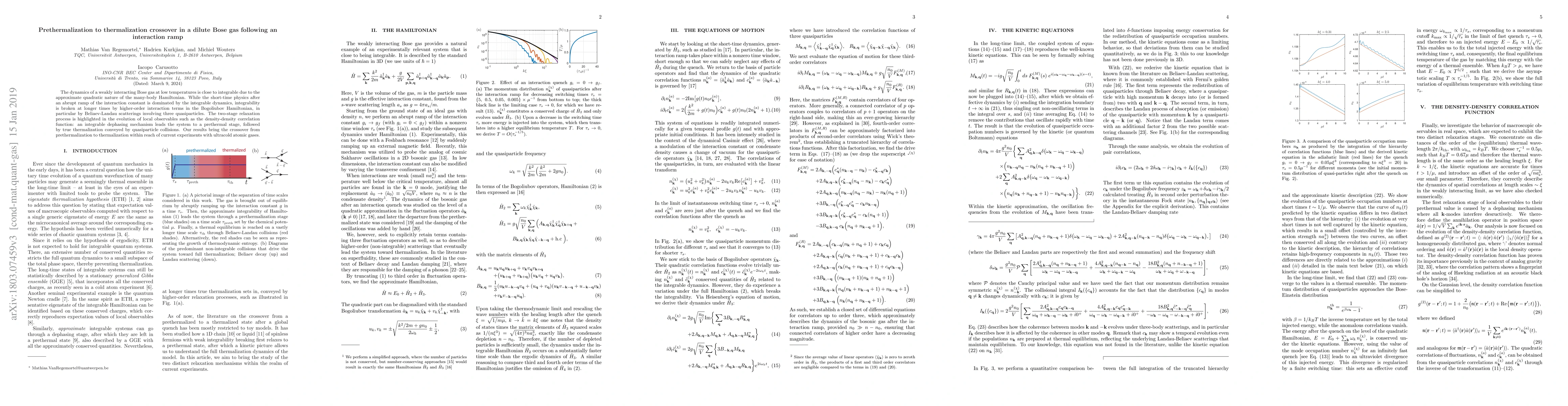 This paper investigates the dynamics of a weakly interacting Bose gas undergoing an interaction ramp, revealing a two-stage relaxation process: initial integrable dynamics followed by quasiparticle collisions leading to thermalization. The study highlights the transition from prethermalization to true thermalization in ultracold atomic gases.