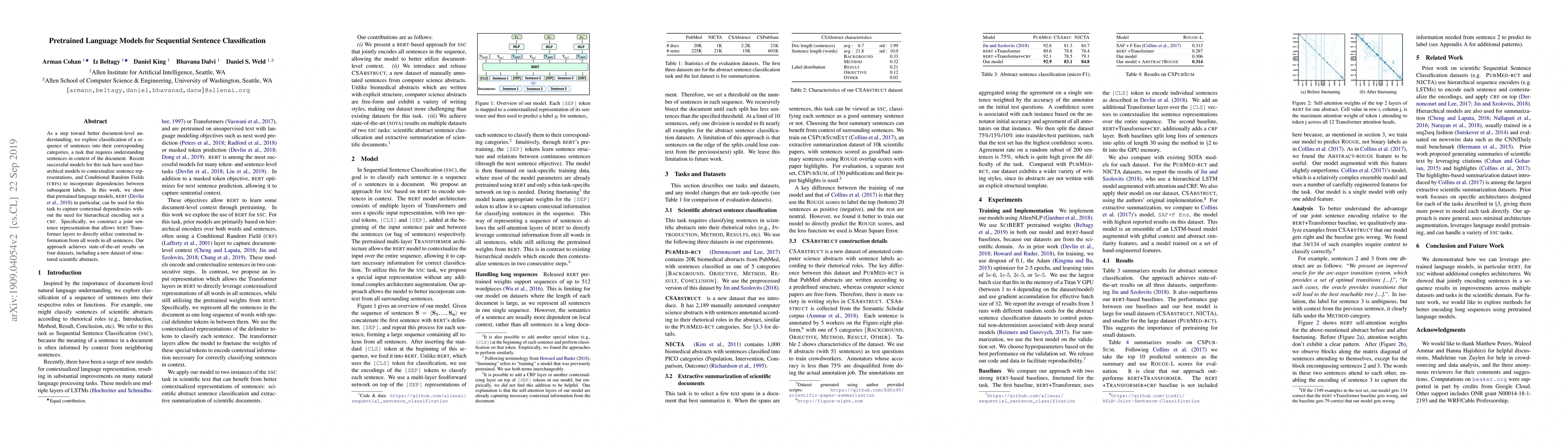 This paper investigates using pretrained language models like BERT for classifying sequences of sentences into categories, achieving state-of-the-art results without hierarchical models or CRFs, by constructing joint sentence representations that leverage contextual information from all sentences.