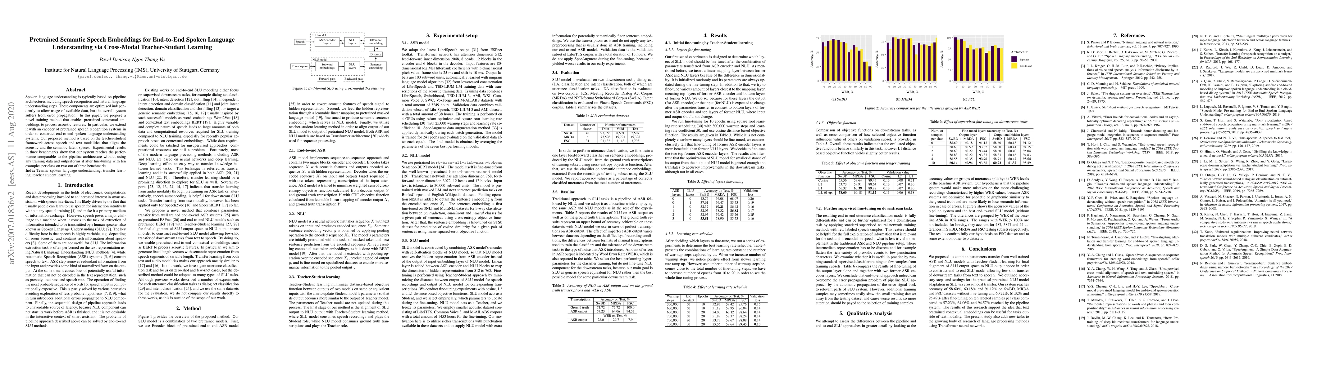 This paper proposes a novel teacher-student learning method using pretrained semantic speech embeddings to create end-to-end spoken language understanding systems, achieving comparable performance to traditional pipeline architectures without training data and outperforming it with minimal fine-tuning.