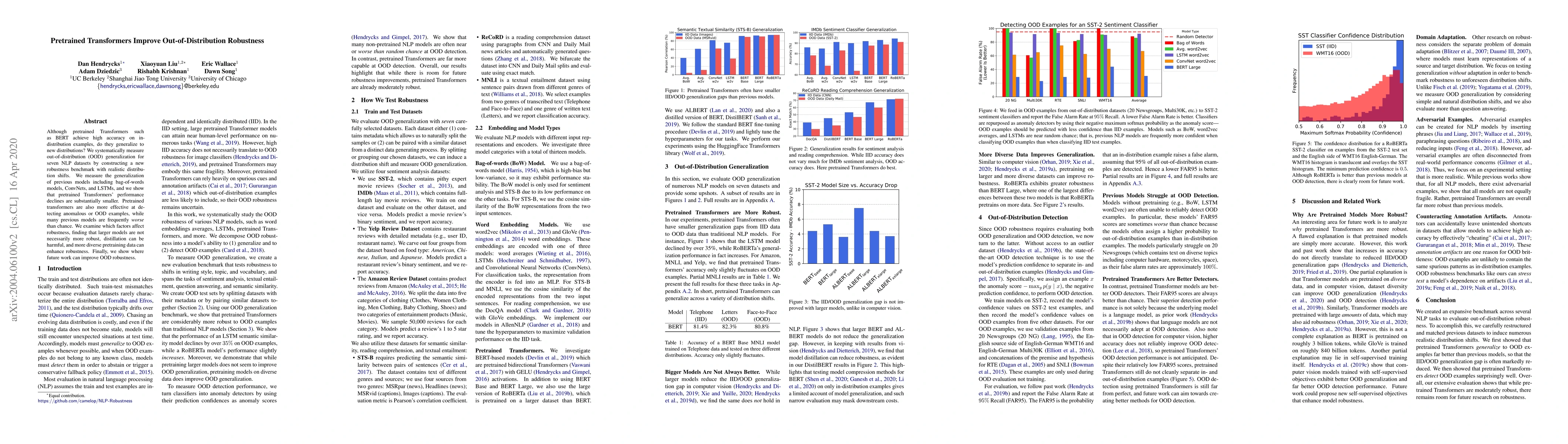 This research assesses the out-of-distribution generalization of pretrained Transformers like BERT compared to other models, finding that Transformers exhibit better robustness despite lower accuracy on new distributions. It highlights that larger models are not inherently more robust and suggests that more diverse pretraining data can enhance performance on such tasks.