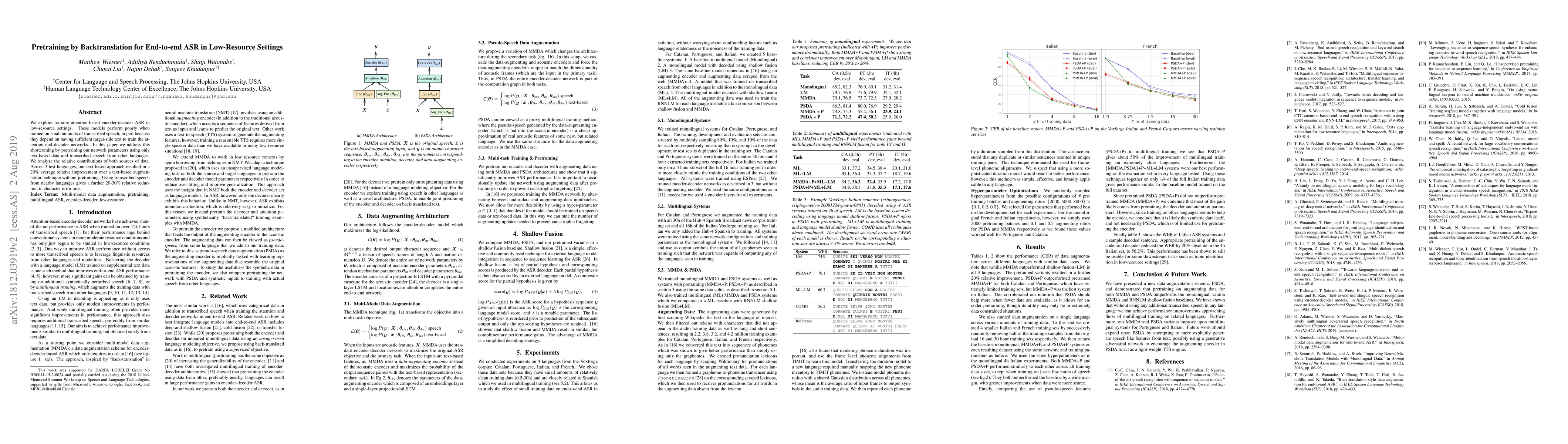 This paper investigates pretraining attention-based encoder-decoder ASR models in low-resource settings using backtranslation, achieving a 20% improvement over text-based augmentation alone. Incorporating transcribed speech from other languages further reduces character error rates by 20-30%.