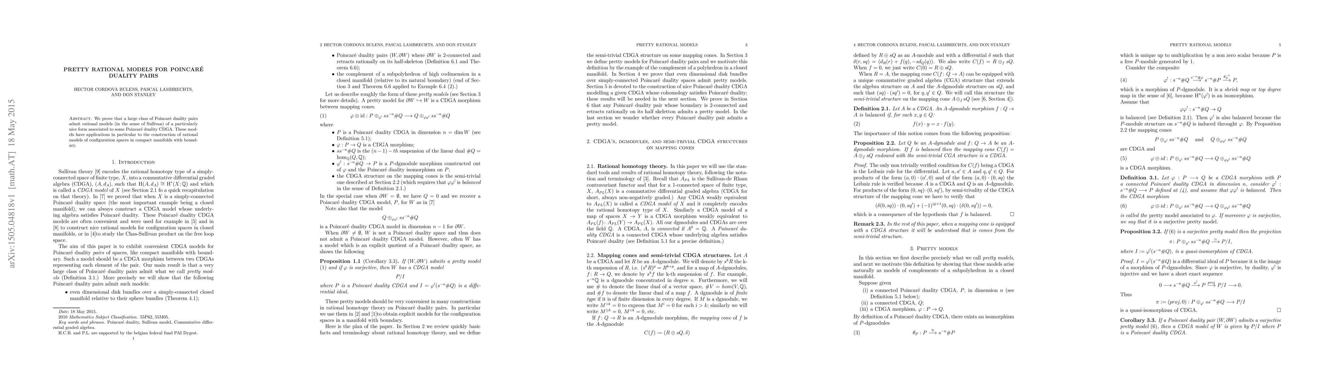 The paper proves that many Poincaré duality pairs have rational models linked to Poincaré duality CDGA, facilitating the construction of rational models for configuration spaces in compact manifolds with boundaries. These results highlight the elegance and utility of pretty rational models in geometric topology.