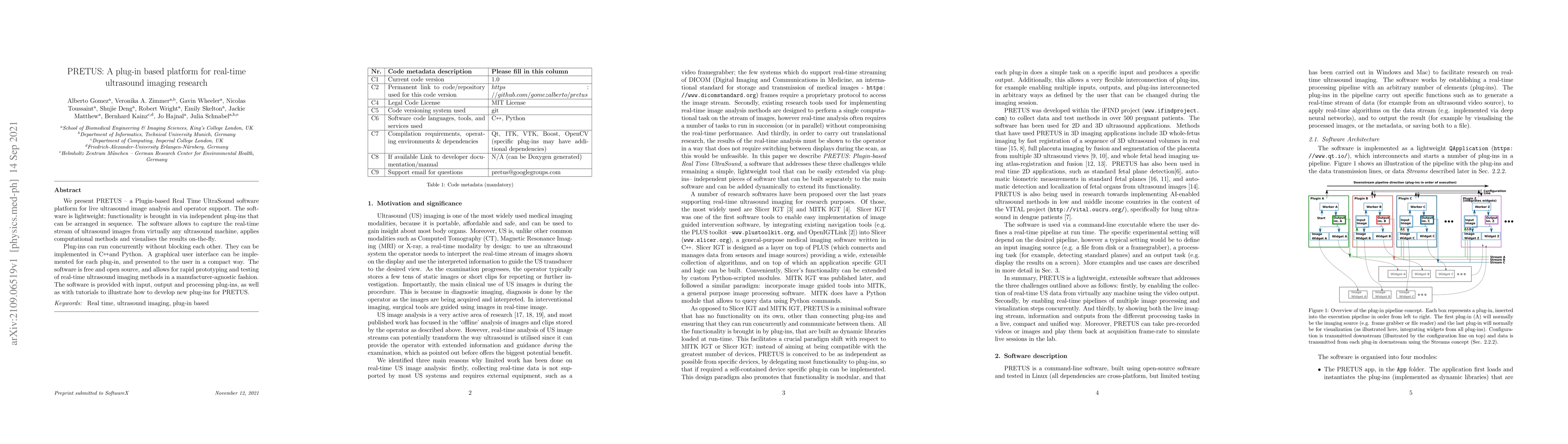 PRETUS is a lightweight, open-source platform for real-time ultrasound imaging that utilizes plug-ins for live image analysis and operator support. It allows for rapid prototyping and testing of imaging methods through its modular, manufacturer-agnostic design.