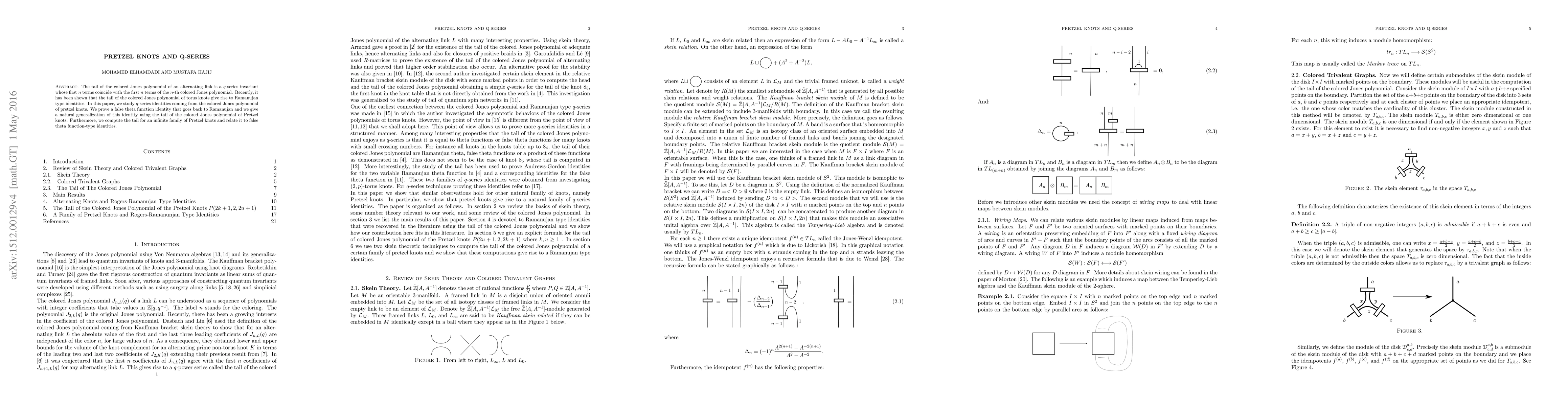 This paper investigates $q$-series identities derived from the colored Jones polynomial of pretzel knots, proving a false theta function identity related to Ramanujan and generalizing it using the tail of the colored Jones polynomial, while also computing these tails for an infinite family of pretzel knots and connecting them to false theta function-type identities.