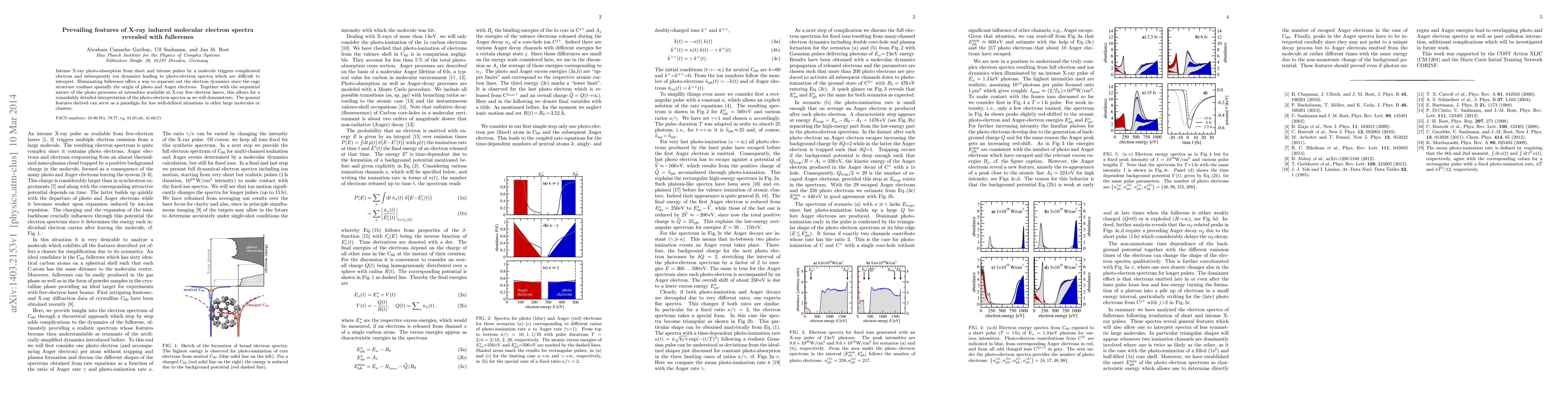 Intense X-ray photo-absorption from short and intense pulses by a molecule triggers complicated electron and subsequently ion dynamics leading to photo-electron spectra which are difficult to interpret. Illuminating fullerenes offers a way to separate out the electron dynamics. Moreover, the fullerene cage confines spatially the origin of photo and Auger electrons. Together with the sequential nature of the photo processes at intensities available at X-ray free electron lasers, this allows for a remarkably detailed interpretation of the photo-electron spectra as we will demonstrate. The general features derived can serve as a paradigm for less well-defined situations in other large molecules or clusters.