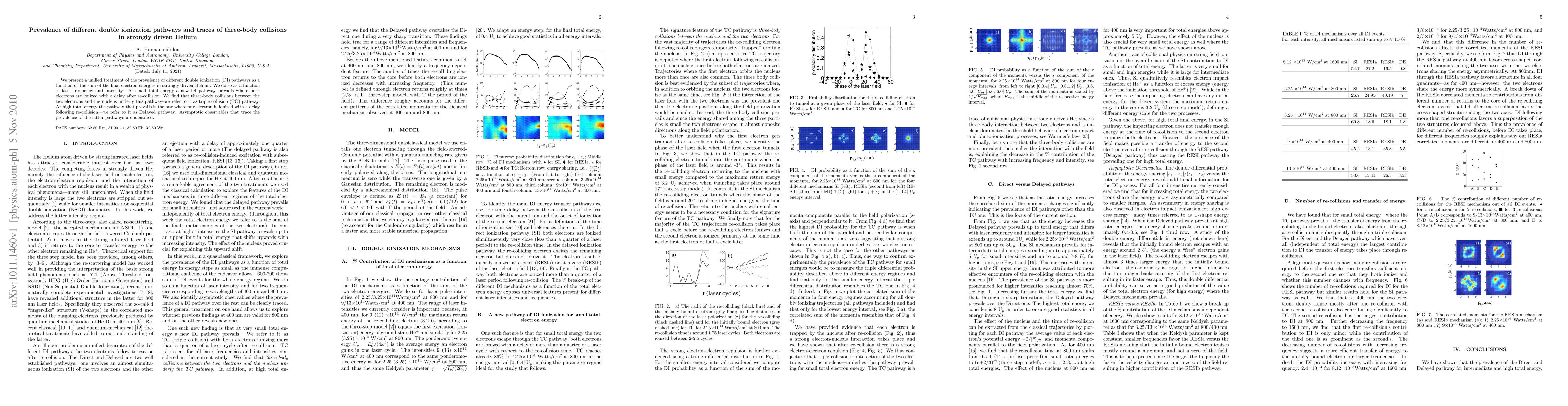 We present a unified treatment of the prevalence of different double ionization (DI) pathways as a function of the sum of the final electron energies in strongly driven Helium. We do so as a function of laser frequency and intensity. At small total energy a new DI pathway prevails where both electrons are ionized with a delay after re-collision. We find that three-body collisions between the two electrons and the nucleus underly this pathway--we refer to it as triple collision (TC) pathway. At high total energy the pathway that prevails is the one where one electron is ionized with a delay following re-collision---we refer to it as Delayed pathway. Asymptotic observables that trace the prevalence of the latter pathways are identified.