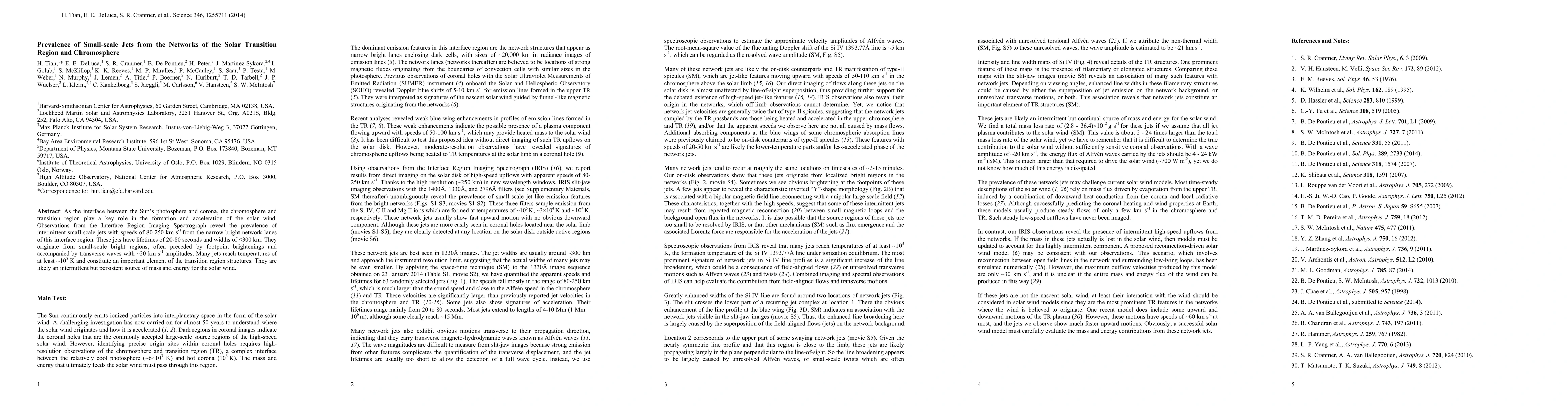 This study reveals frequent small-scale jets in the solar transition region and chromosphere, with speeds ranging from 80-250 km/s, lifetimes of 20-80 seconds, and widths of 300 km or less. These jets are crucial for solar wind dynamics and originate from bright network regions.