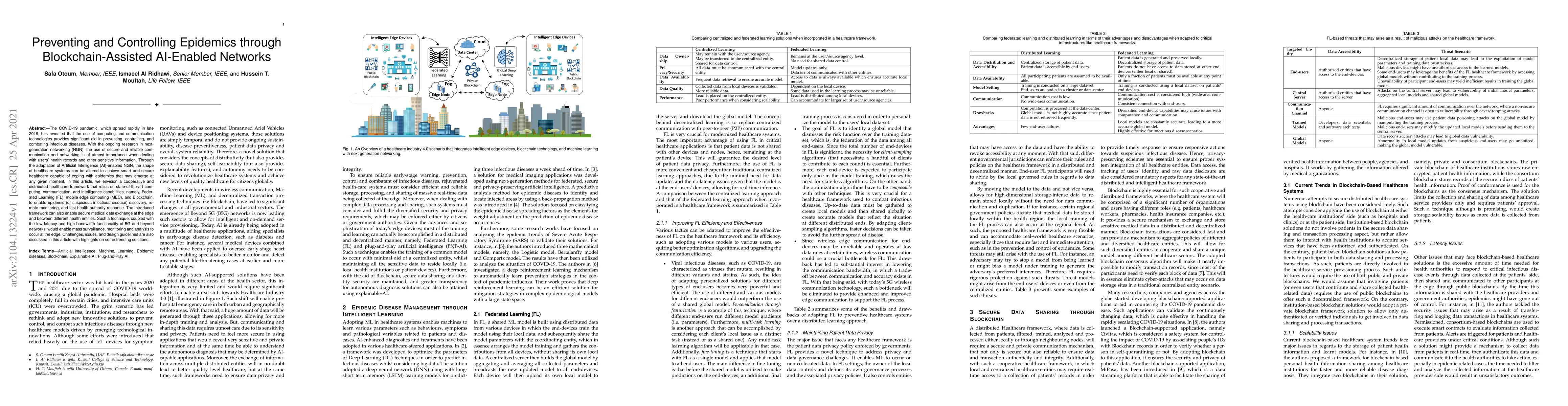 A blockchain-assisted AI-enabled network framework is proposed to prevent and control epidemics, leveraging Federated Learning, mobile edge computing, and Blockchain for secure health data exchange and rapid response.