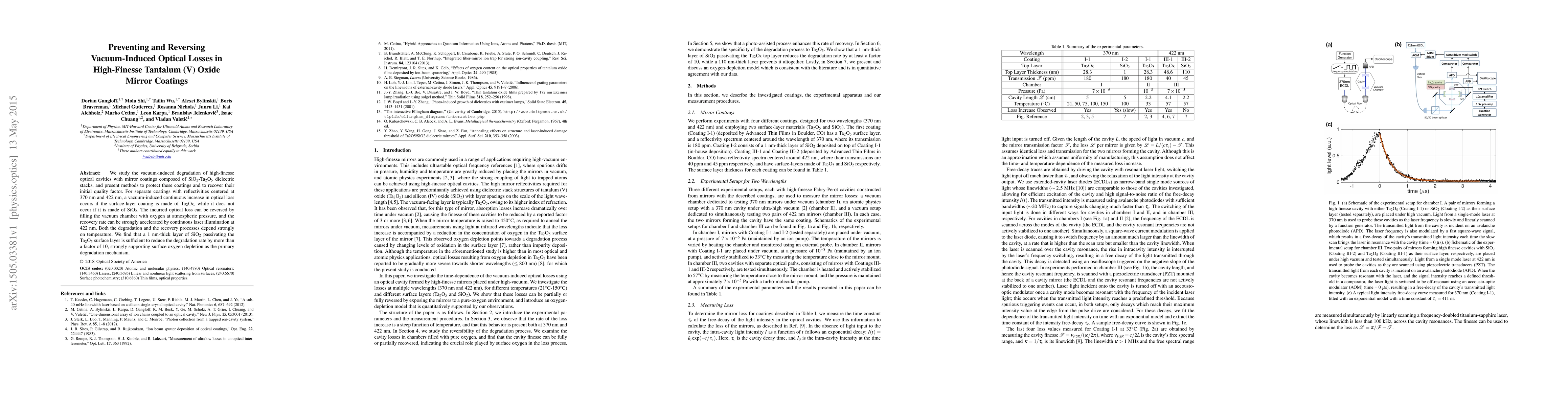 We study the vacuum-induced degradation of high-finesse optical cavities with mirror coatings composed of SiO$_2$-Ta$_{2}$O$_{5}$ dielectric stacks, and present methods to protect these coatings and to recover their initial quality factor. For separate coatings with reflectivities centered at 370 nm and 422 nm, a vacuum-induced continuous increase in optical loss occurs if the surface-layer coating is made of Ta$_{2}$O$_{5}$, while it does not occur if it is made of SiO$_2$. The incurred optical loss can be reversed by filling the vacuum chamber with oxygen at atmospheric pressure, and the recovery rate can be strongly accelerated by continuous laser illumination at 422 nm. Both the degradation and the recovery processes depend strongly on temperature. We find that a 1 nm-thick layer of SiO$_2$ passivating the Ta$_{2}$O$_{5}$ surface layer is sufficient to reduce the degradation rate by more than a factor of 10, strongly supporting surface oxygen depletion as the primary degradation mechanism.