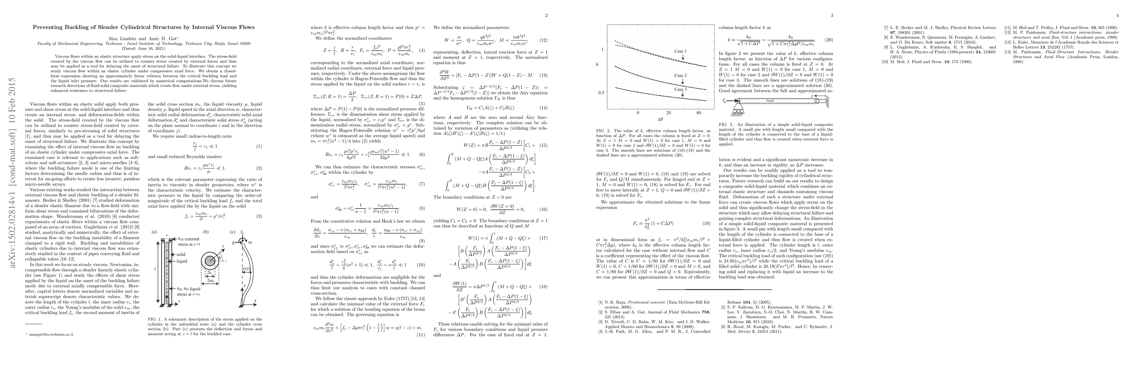 Viscous flows within an elastic structure apply stress on the solid-liquid interface. The stress-field created by the viscous flow can be utilized to counter stress created by external forces and thus may be applied as a tool for delaying the onset of structural failure. To illustrate this concept we study viscous flow within an elastic cylinder under compressive axial force. We obtain a closed-form expression showing an approximately linear relation between the critical buckling load and the liquid inlet pressure. Our results are validated by numerical computations. We discuss future research directions of fluid-solid composite materials which create flow under external stress, yielding enhanced resistance to structural failure.