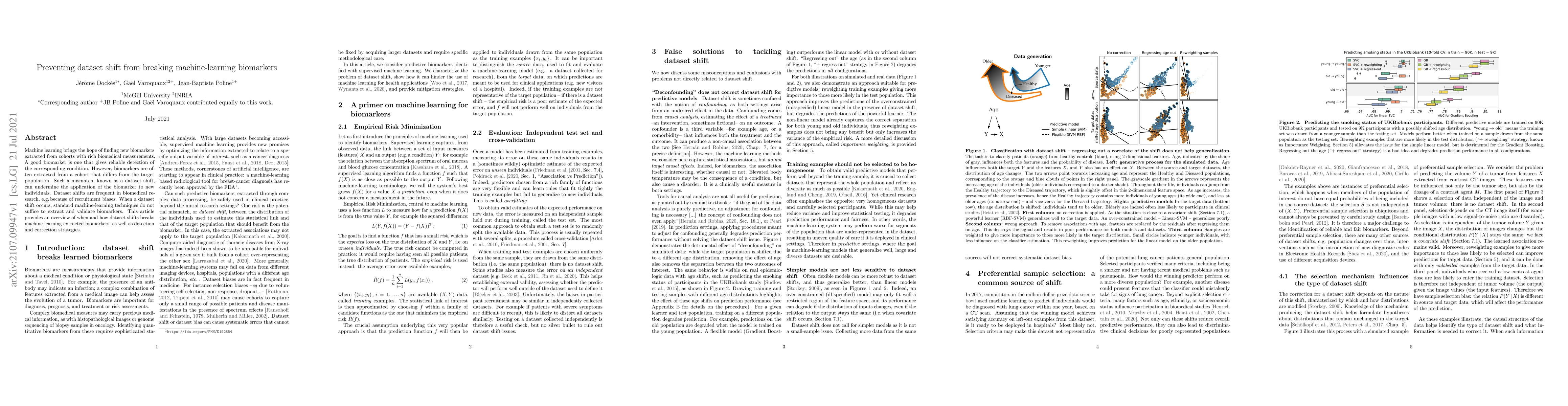 Machine learning biomarkers can fail when applied to new individuals due to dataset shift, a mismatch between the training and target populations. This paper provides strategies for detecting and correcting dataset shifts in biomedical research.