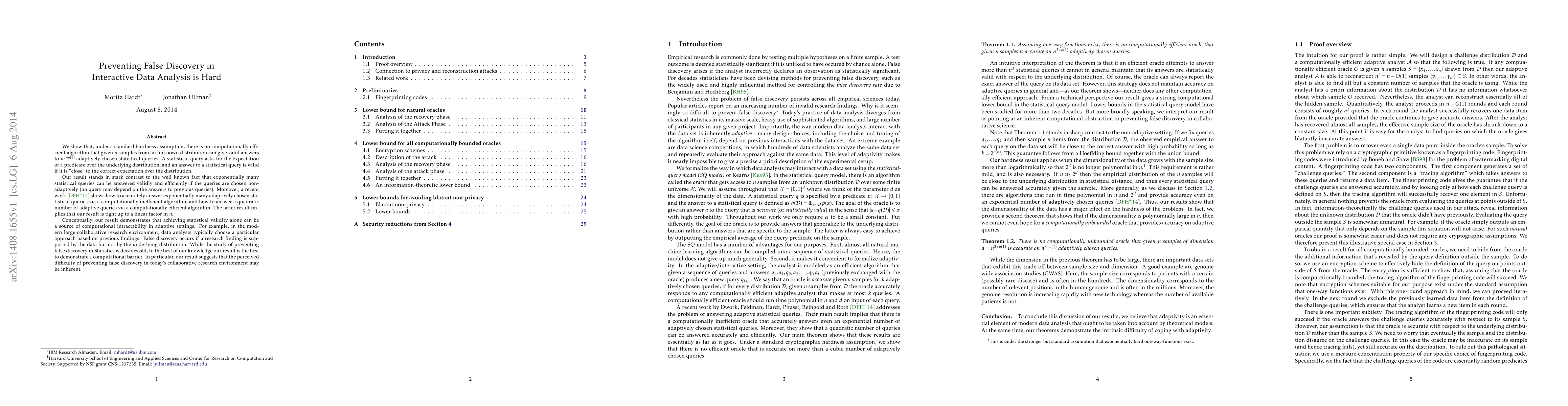 There is no computationally efficient algorithm to prevent false discovery in interactive data analysis, even with adaptively chosen statistical queries, under a standard hardness assumption.