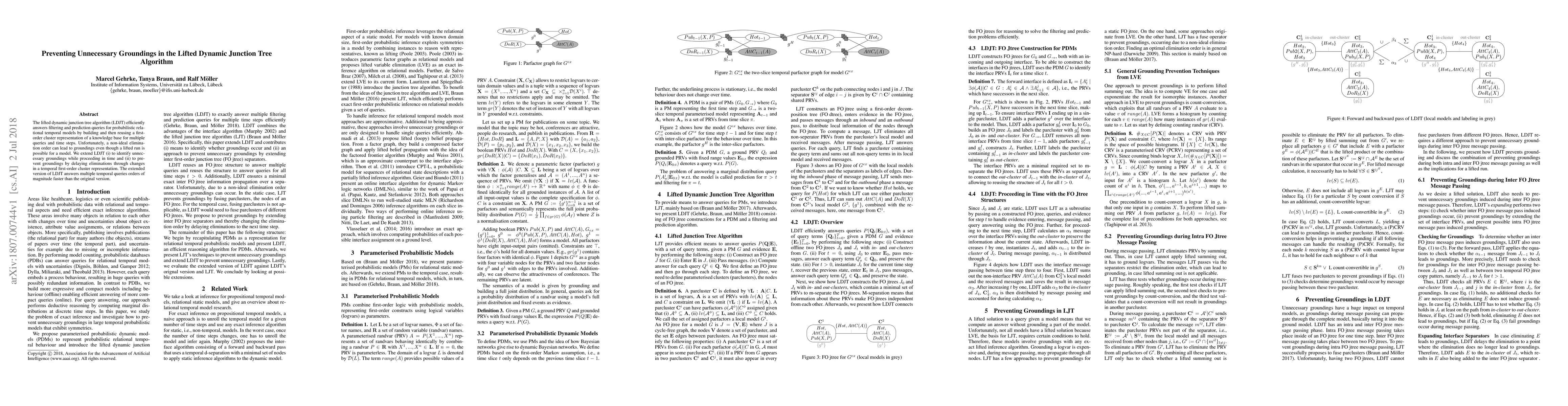 The lifted dynamic junction tree algorithm (LDJT) efficiently answers filtering and prediction queries for probabilistic relational temporal models by building and then reusing a first-order cluster representation of a knowledge base for multiple queries and time steps. Unfortunately, a non-ideal elimination order can lead to groundings even though a lifted run is possible for a model. We extend LDJT (i) to identify unnecessary groundings while proceeding in time and (ii) to prevent groundings by delaying eliminations through changes in a temporal first-order cluster representation. The extended version of LDJT answers multiple temporal queries orders of magnitude faster than the original version.