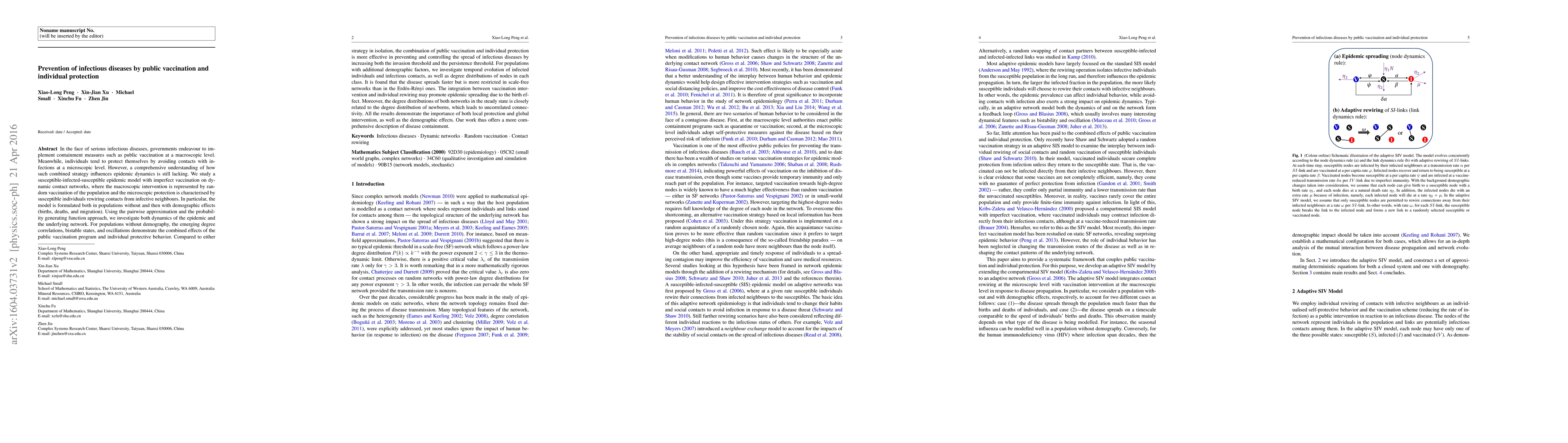 In the face of serious infectious diseases, governments endeavour to implement containment measures such as public vaccination at a macroscopic level. Meanwhile, individuals tend to protect themselves by avoiding contacts with infections at a microscopic level. However, a comprehensive understanding of how such combined strategy influences epidemic dynamics is still lacking. We study a susceptible-infected-susceptible epidemic model with imperfect vaccination on dynamic contact networks, where the macroscopic intervention is represented by random vaccination of the population and the microscopic protection is characterised by susceptible individuals rewiring contacts from infective neighbours. In particular, the model is formulated both in populations without and then with demographic effects. Using the pairwise approximation and the probability generating function approach, we investigate both dynamics of the epidemic and the underlying network. For populations without demography, the emerging degree correlations, bistable states, and oscillations demonstrate the combined effects of the public vaccination program and individual protective behavior. Compared to either strategy in isolation, the combination of public vaccination and individual protection is more effective in preventing and controlling the spread of infectious diseases by increasing both the invasion threshold and the persistence threshold. For populations with additional demographic factors, the integration between vaccination intervention and individual rewiring may promote epidemic spreading due to the birth effect. Moreover, the degree distributions of both networks in the steady state is closely related to the degree distribution of newborns, which leads to uncorrelated connectivity. All the results demonstrate the importance of both local protection and global intervention, as well as the demographic effects.