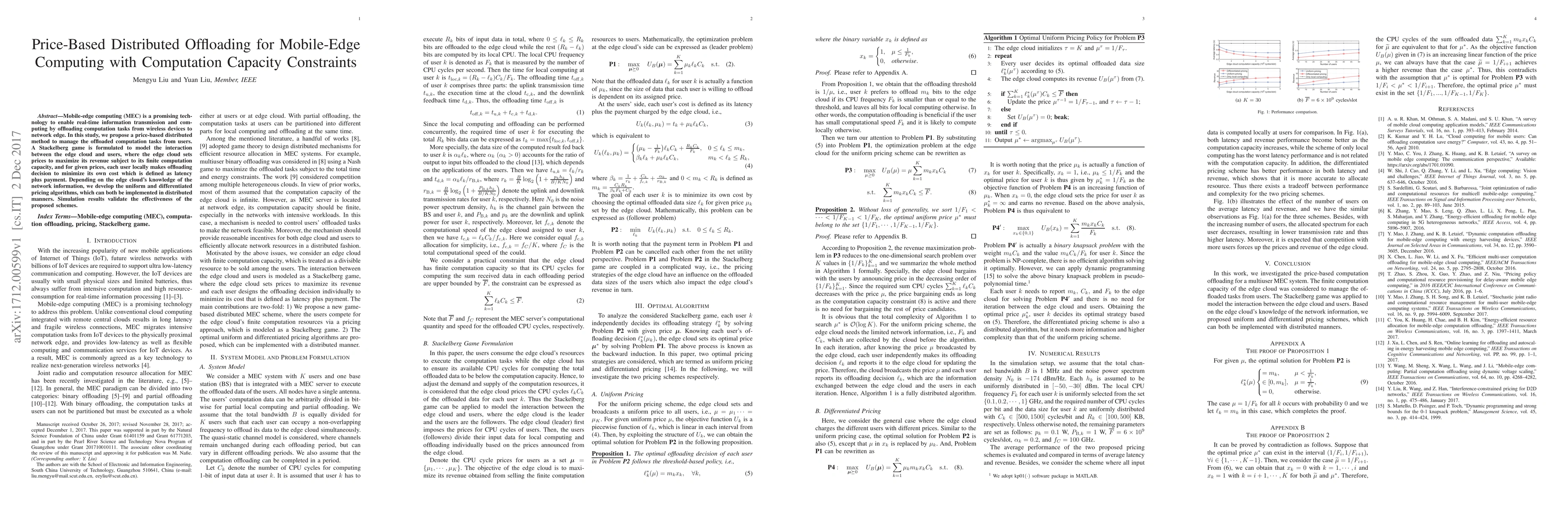 Summary: This paper proposes a price-based distributed offloading strategy for mobile-edge computing to optimize real-time task processing while considering computation capacity constraints at the network edge. The approach aims to balance task allocation and resource utilization efficiently.