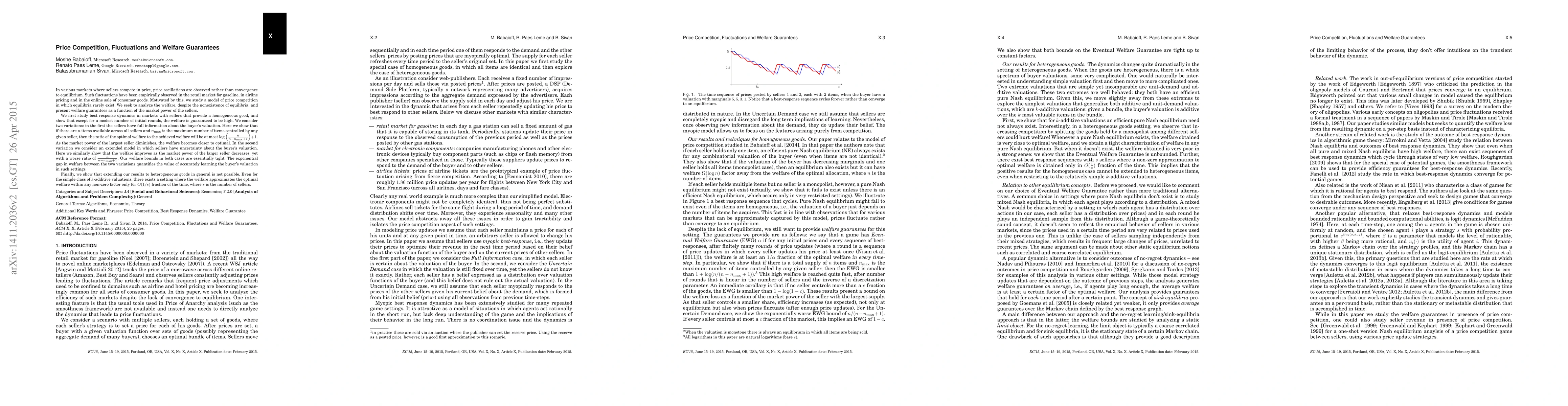 In various markets where sellers compete in price, price oscillations are observed rather than convergence to equilibrium. Such fluctuations have been empirically observed in the retail market for gasoline, in airline pricing and in the online sale of consumer goods. Motivated by this, we study a model of price competition in which an equilibrium rarely exists. We seek to analyze the welfare, despite the nonexistence of an equilibrium, and present welfare guarantees as a function of the market power of the sellers. We first study best response dynamics in markets with sellers that provide a homogeneous good, and show that except for a modest number of initial rounds, the welfare is guaranteed to be high. We consider two variations: in the first the sellers have full information about the valuation of the buyer. Here we show that if there are $n$ items available across all sellers and $n_{\max}$ is the maximum number of items controlled by any given seller, the ratio of the optimal welfare to the achieved welfare will be at most $\log(\frac{n}{n-n_{\max}+1})+1$. As the market power of the largest seller diminishes, the welfare becomes closer to optimal. In the second variation we consider an extended model where sellers have uncertainty about the buyer's valuation. Here we similarly show that the welfare improves as the market power of the largest seller decreases, yet with a worse ratio of $\frac{n}{n-n_{\max}+1}$. The exponential gap in welfare between the two variations quantifies the value of accurately learning the buyer valuation. Finally, we show that extending our results to heterogeneous goods in general is not possible. Even for the simple class of $k$-additive valuations, there exists a setting where the welfare approximates the optimal welfare within any non-zero factor only for $O(1/s)$ fraction of the time, where $s$ is the number of sellers.