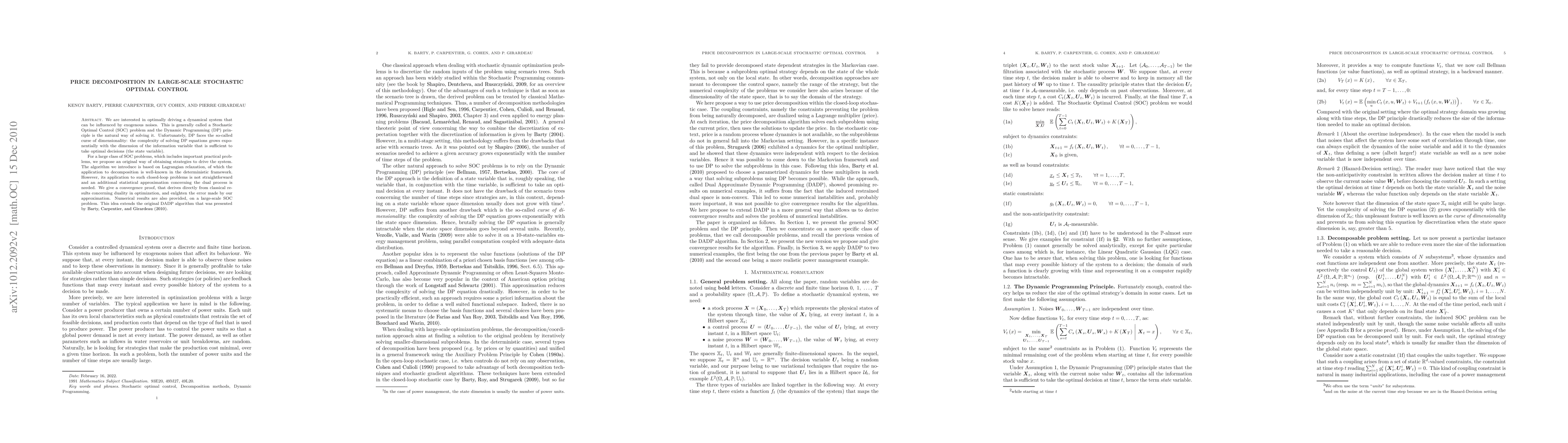 Researchers propose an algorithm to solve large-scale stochastic optimal control problems using Lagrangian relaxation, providing a convergence proof and numerical results for a practical problem.