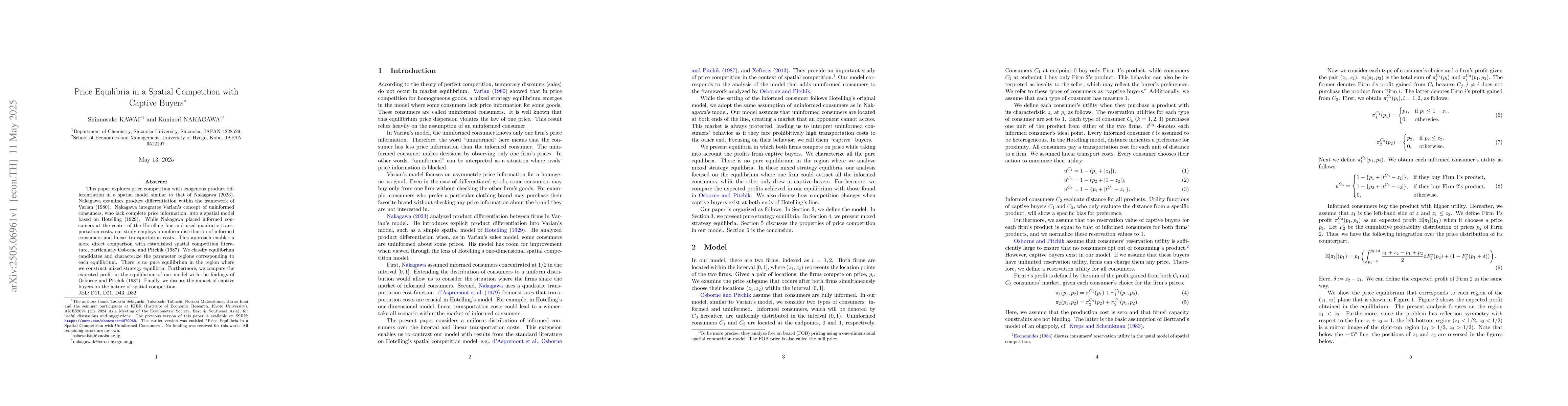 This research contributes to understanding price competition dynamics with captive buyers in spatial markets, offering insights relevant to market structure and pricing strategies.