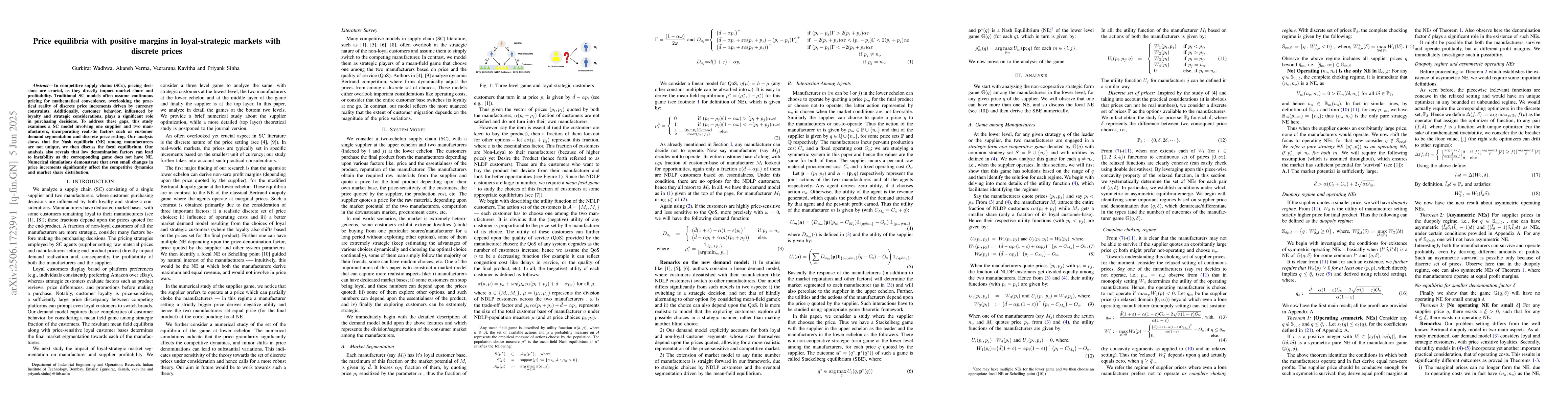 In competitive supply chains (SCs), pricing decisions are crucial, as they directly impact market share and profitability. Traditional SC models often assume continuous pricing for mathematical convenience, overlooking the practical reality of discrete price increments driven by currency constraints. Additionally, customer behavior, influenced by loyalty and strategic considerations, plays a significant role in purchasing decisions. To address these gaps, this study examines a SC model involving one supplier and two manufacturers, incorporating realistic factors such as customer demand segmentation and discrete price setting. Our analysis shows that the Nash equilibria (NE) among manufacturers are not unique, we then discuss the focal equilibrium. Our analysis also reveals that low denomination factors can lead to instability as the corresponding game does not have NE. Numerical simulations demonstrate that even small changes in price increments significantly affect the competitive dynamics and market share distribution.