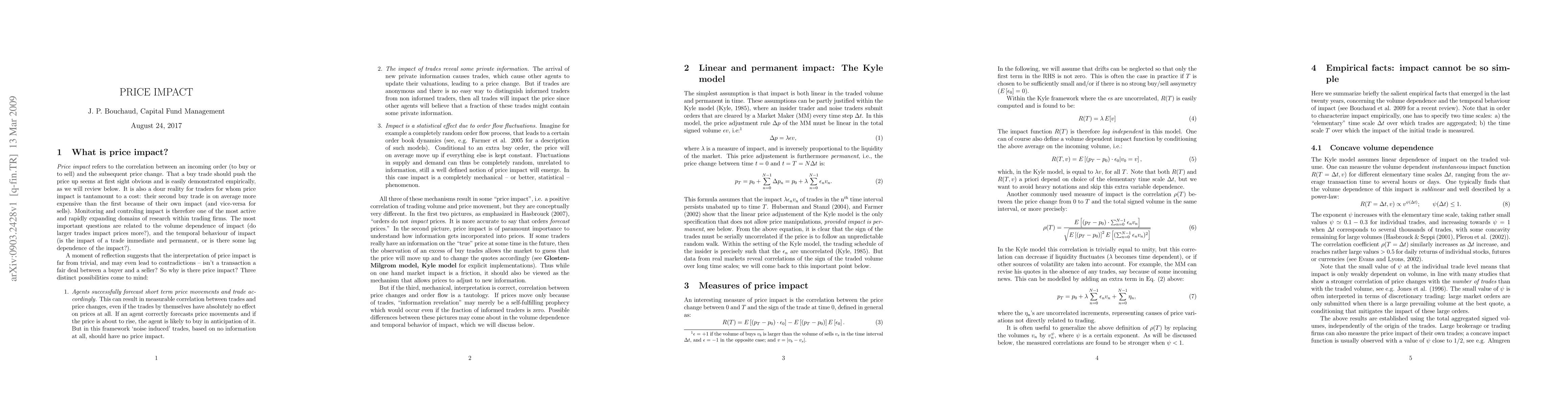 A study examines the concept of price impact in financial markets, finding that while there is a strong correlation between trades and price changes, the actual impact is not linear or permanent, and can be influenced by random fluctuations.