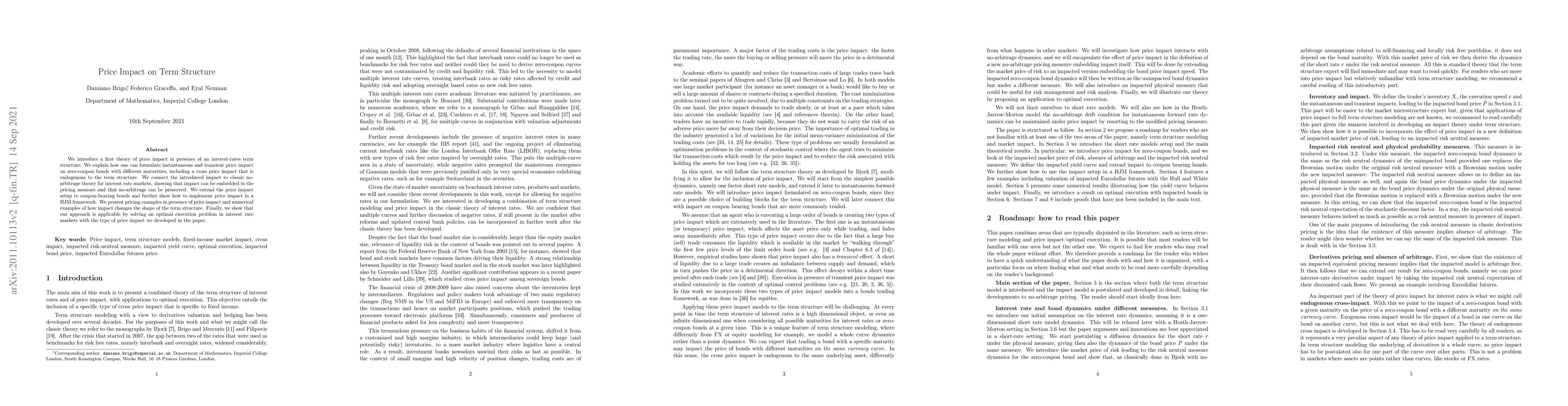 This paper develops a theory of price impact in interest-rate term structure markets, formulating both instantaneous and transient impacts on bonds of varying maturities, including cross-price effects. It integrates this impact into no-arbitrage pricing theory, demonstrating its applicability through optimal execution problems in interest rate markets.