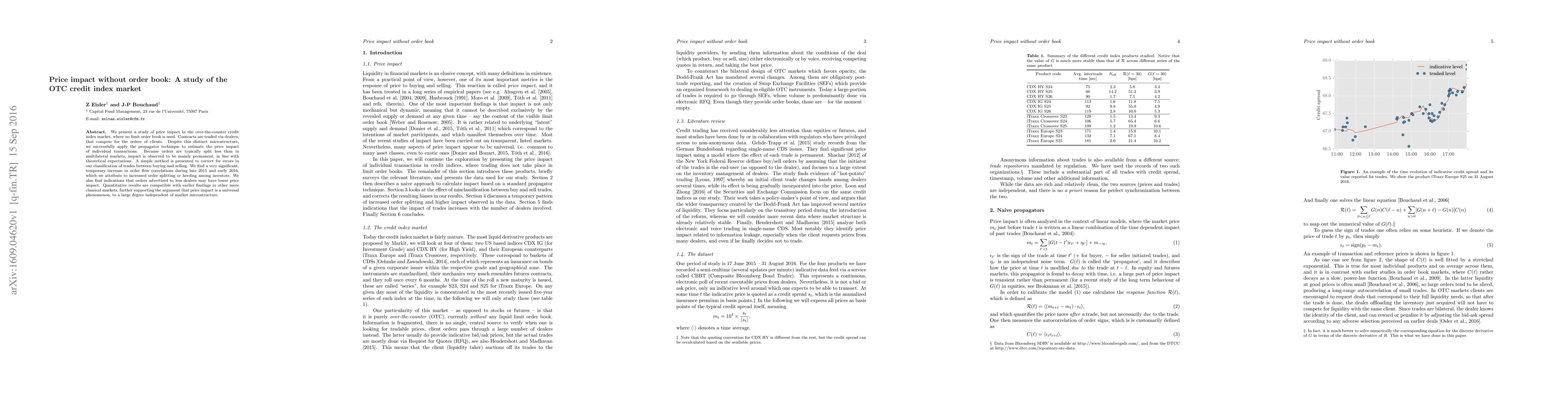 This study investigates price impact in the OTC credit index market, where trades occur through dealers rather than a limit order book, and employs the propagator technique to estimate transaction price impact. The research finds that the impact is primarily permanent and correlates with increased order splitting or herding behavior in late 2015-early 2016. Orders advertised to fewer dealers show lower price impact, indicating a universal nature of price impact across different market microstructures.