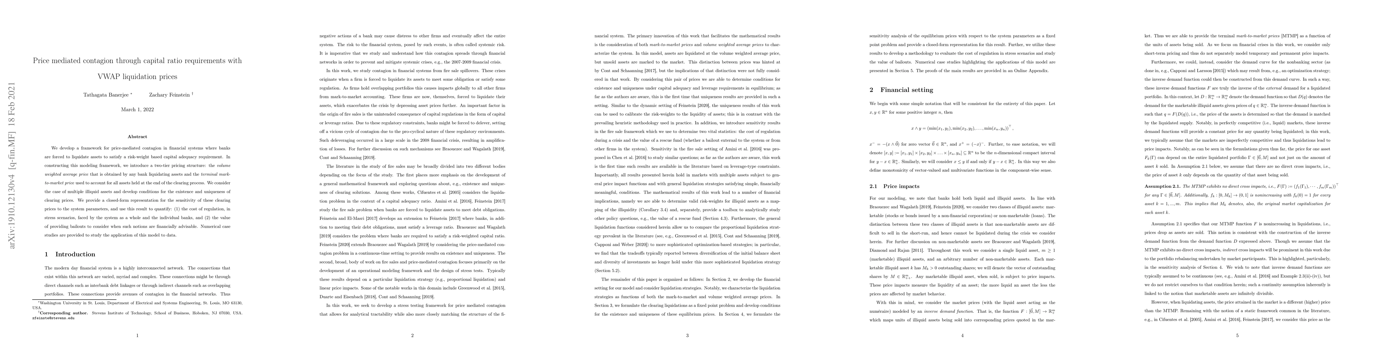 We develop a framework for price-mediated contagion in financial systems where banks are forced to liquidate assets to satisfy a risk-weight based capital adequacy requirement. In constructing this modeling framework, we introduce a two-tier pricing structure: the volume weighted average price that is obtained by any bank liquidating assets and the terminal mark-to-market price used to account for all assets held at the end of the clearing process. We consider the case of multiple illiquid assets and develop conditions for the existence and uniqueness of clearing prices. We provide a closed-form representation for the sensitivity of these clearing prices to the system parameters, and use this result to quantify: (1) the cost of regulation, in stress scenarios, faced by the system as a whole and the individual banks, and (2) the value of providing bailouts to consider when such notions are financially advisable. Numerical case studies are provided to study the application of this model to data.