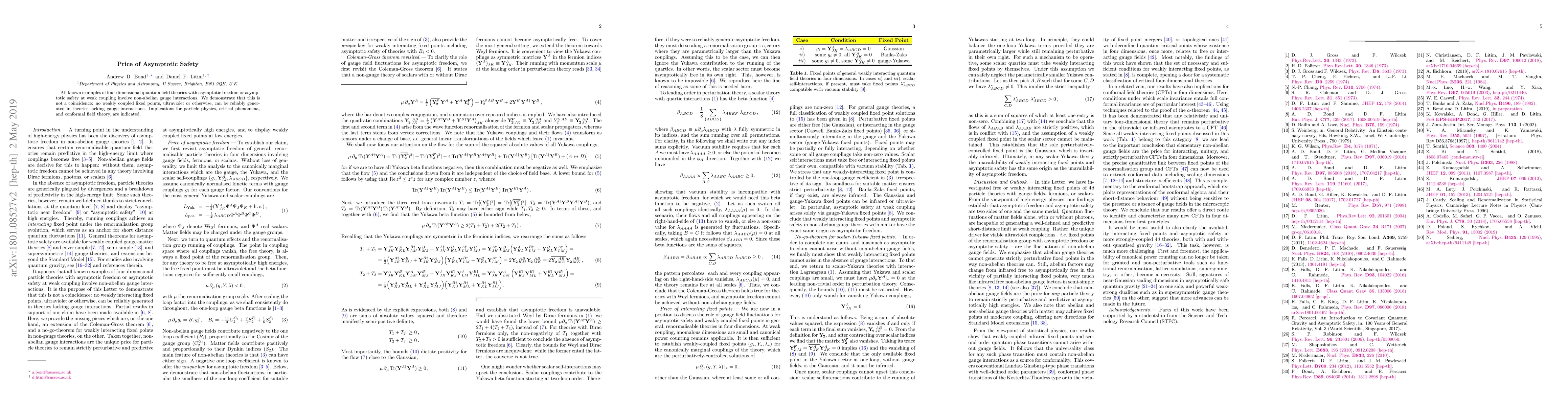 This paper proves that four-dimensional quantum field theories with asymptotic safety at weak coupling necessarily involve non-abelian gauge interactions, suggesting that gauge interactions are essential for generating reliable fixed points. The findings have significant implications for particle physics, critical phenomena, and conformal field theory.