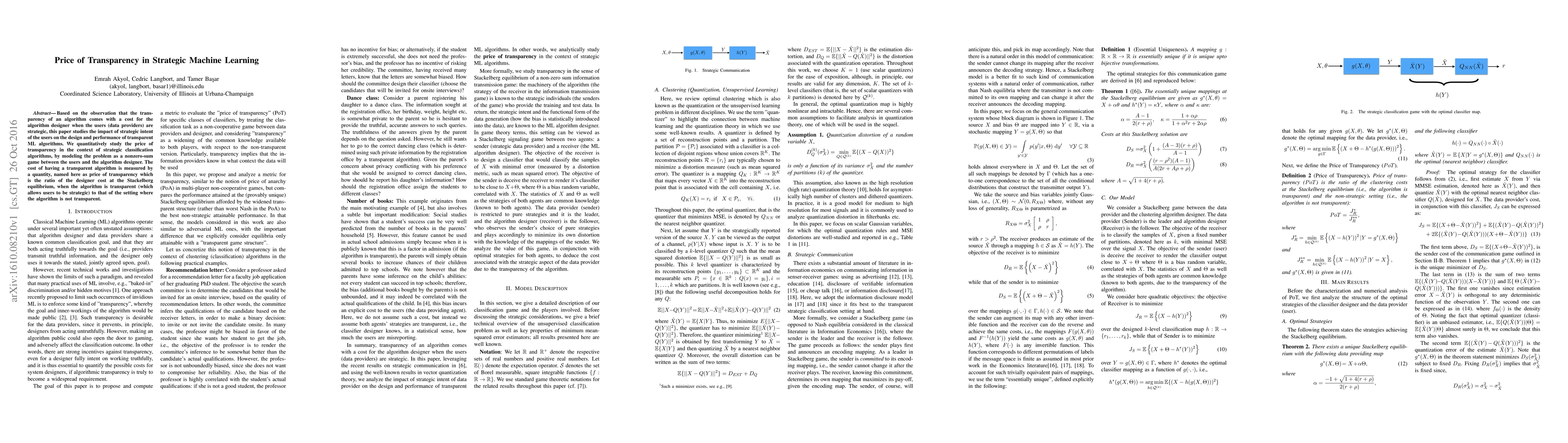 This paper studies how algorithm designers balance transparency with user strategy in machine learning, finding that a transparent algorithm costs more due to strategic users.