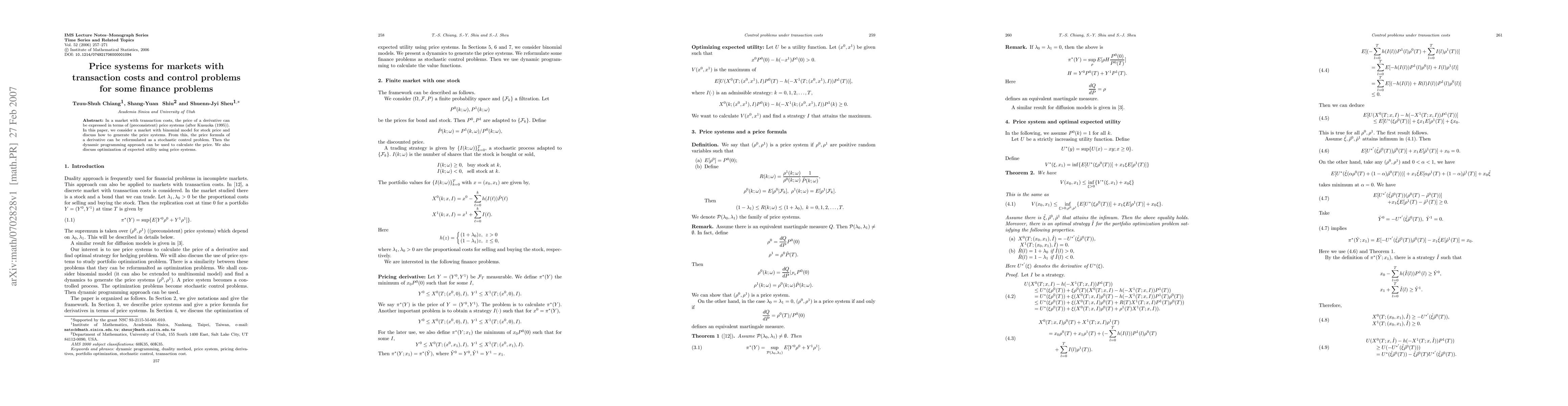 In a market with transaction costs, the price of a derivative can be expressed in terms of (preconsistent) price systems (after Kusuoka (1995)). In this paper, we consider a market with binomial model for stock price and discuss how to generate the price systems. From this, the price formula of a derivative can be reformulated as a stochastic control problem. Then the dynamic programming approach can be used to calculate the price. We also discuss optimization of expected utility using price systems.