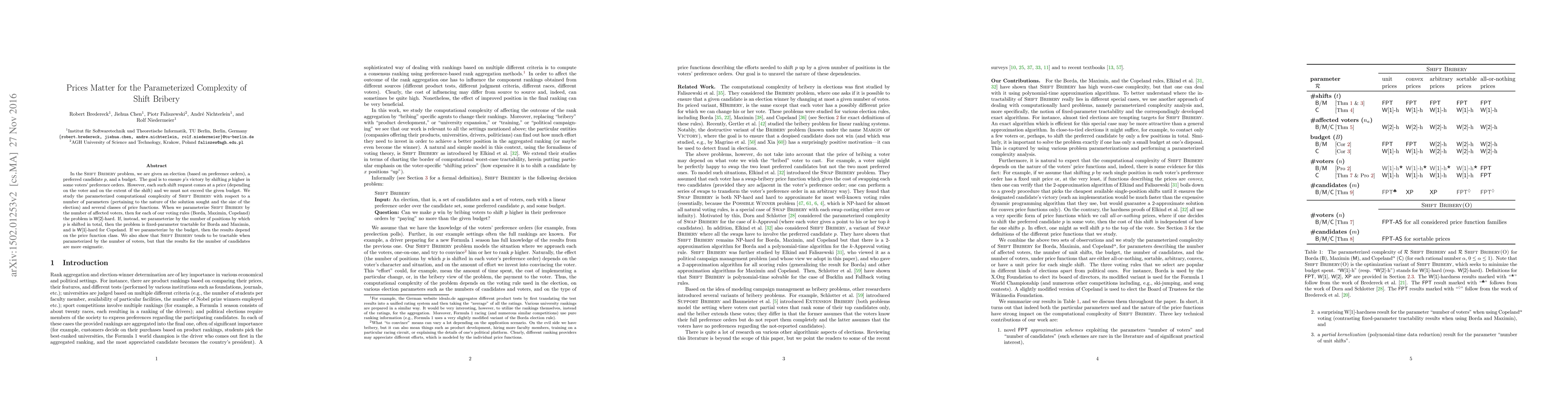 The Shift Bribery problem is studied for its parameterized complexity, with varying results depending on the parameterization method, such as affected voters or total shift amount.